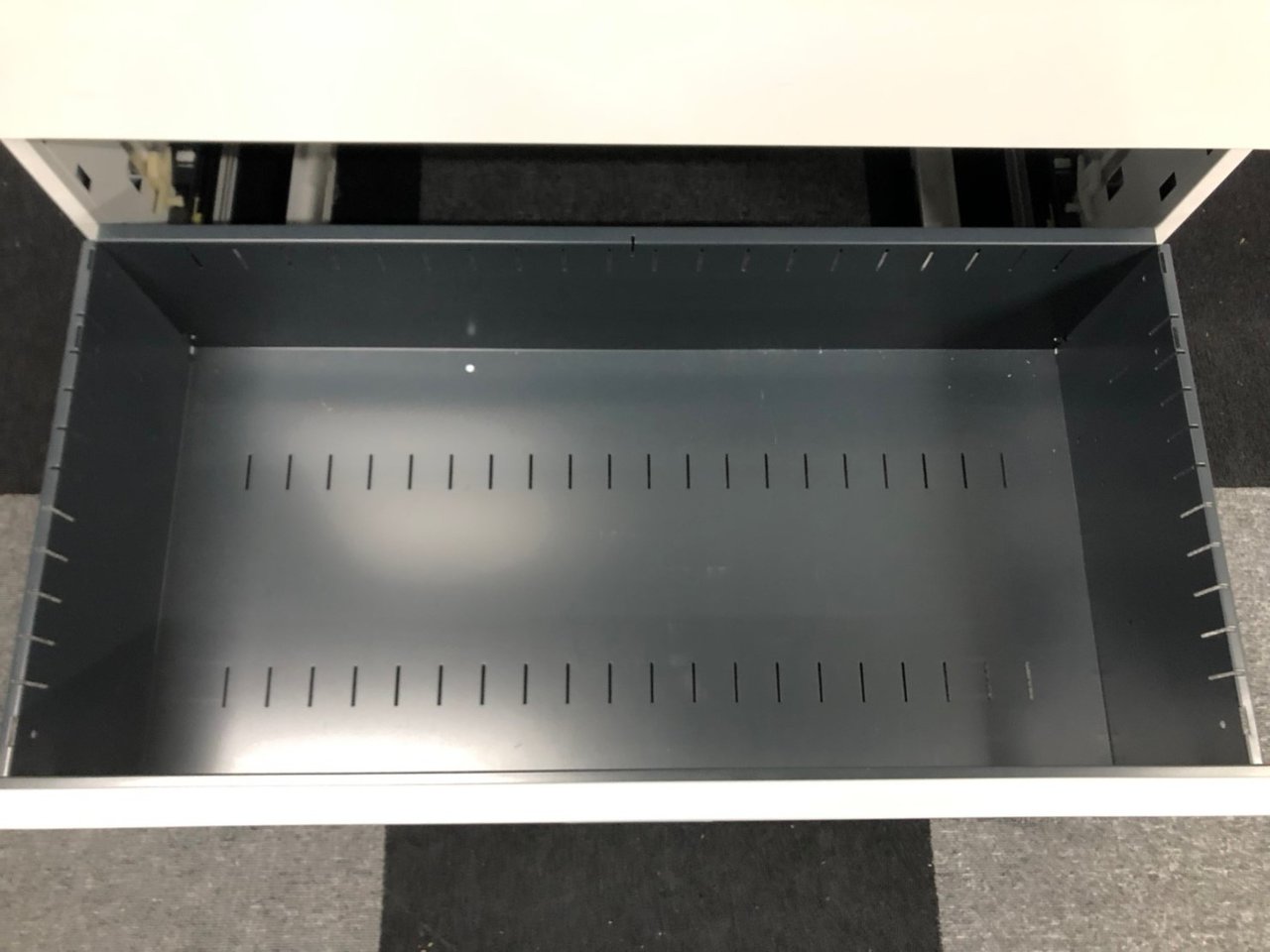- 一部不具合ありそ引出の開閉不可、施錠不可、棚板無しといったの書庫の本来の効用を果たすための機能以外の一部が使用不可(例、扉、引出の開閉がしづらいなどがある。 )