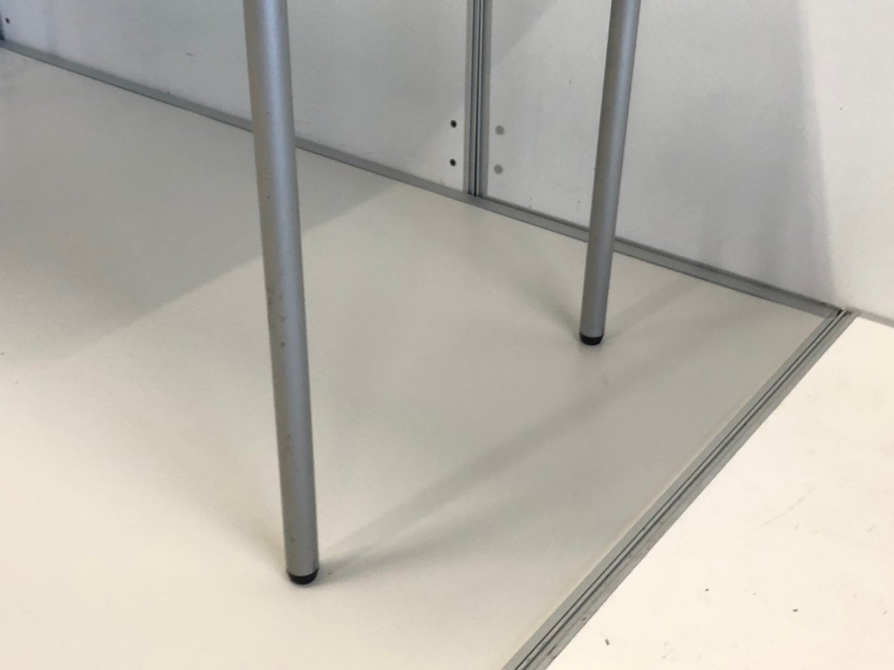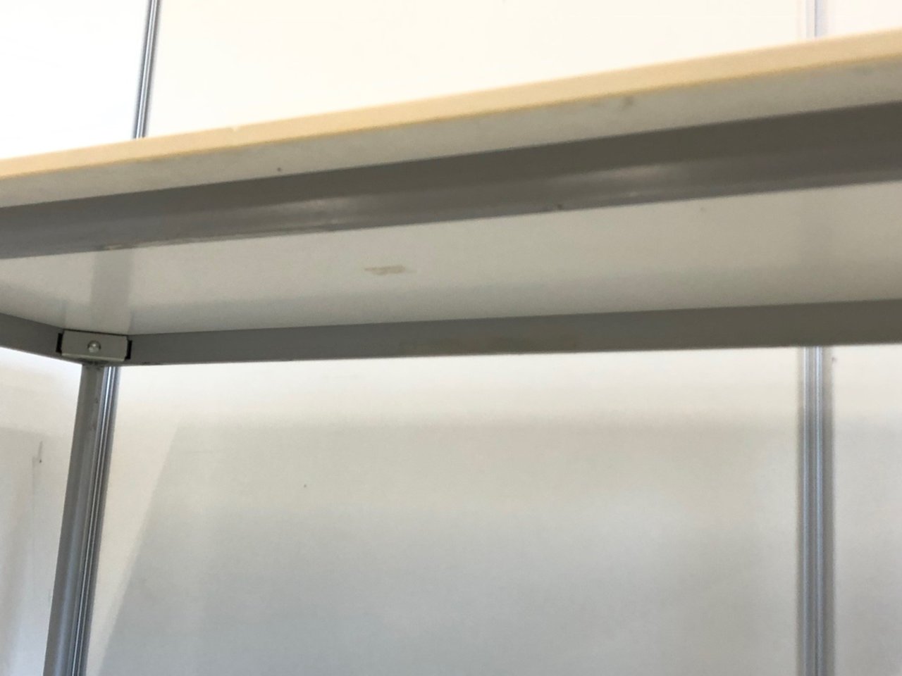 - 一部不具合あり天板歪み、アジャスター無し、キャスター使用不可ようなそのテーブルの本来の効用を果たすための機能以外の一部が使用不可な状態。(例、キャスターロッ ク機能使用不可、棚板無し等がある。)