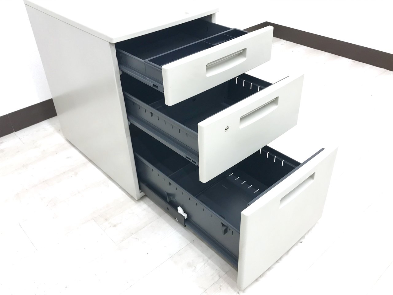 - 一部不具合ありその脇机・ワゴンの本来の効用を果たすための機能以外の一部が使用不可な状態。(例、引出が開閉しづらい、 キャスターロック機能使用不可、ラッチ不良 等がある。)