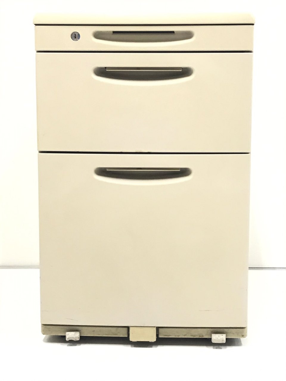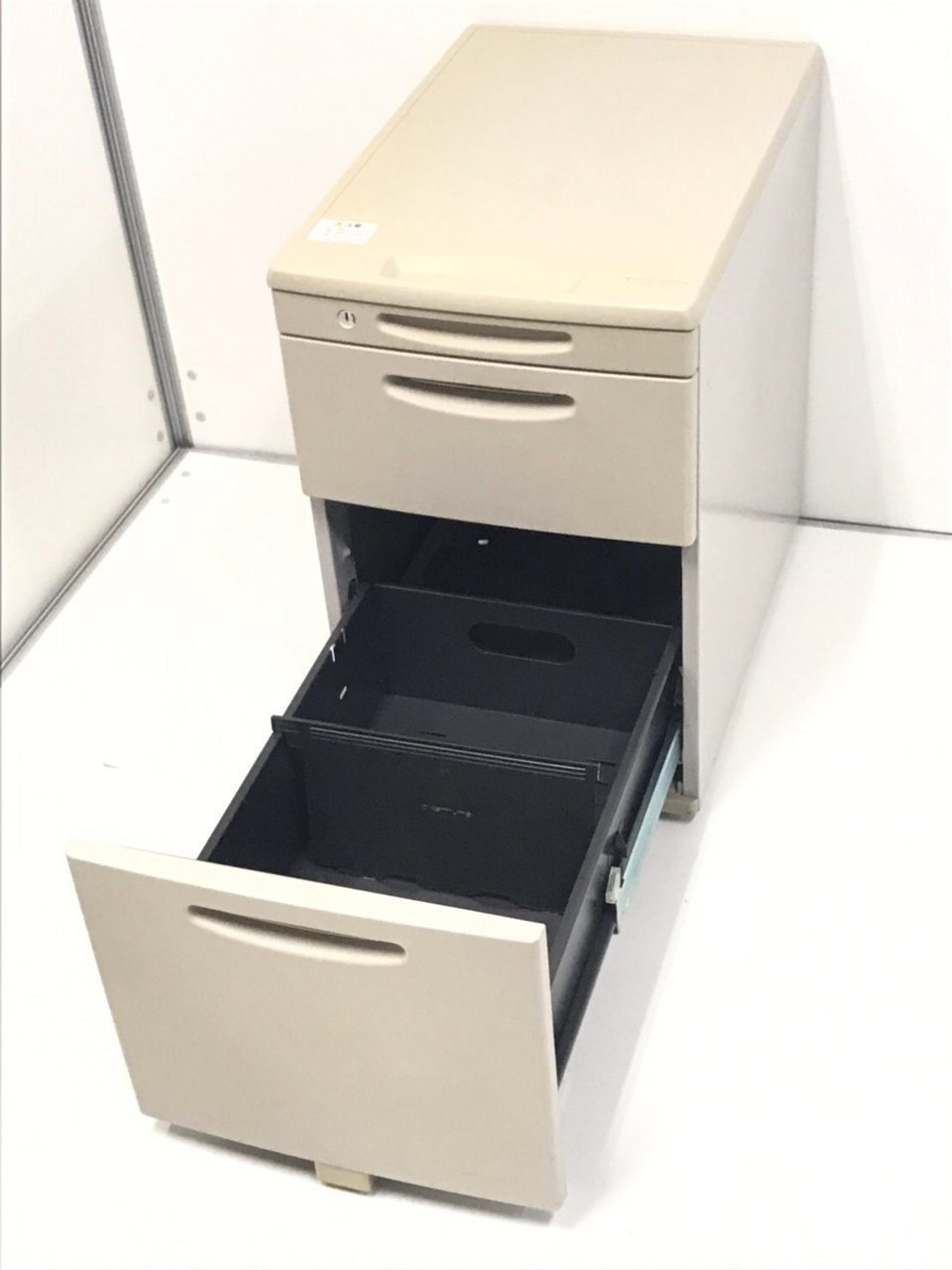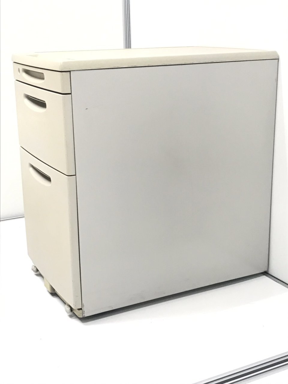 - 一部不具合ありその脇机・ワゴンの本来の効用を果たすための機能以外の一部が使用不可な状態。(例、引出が開閉しづらい、 キャスターロック機能使用不可、ラッチ不良 等がある。)