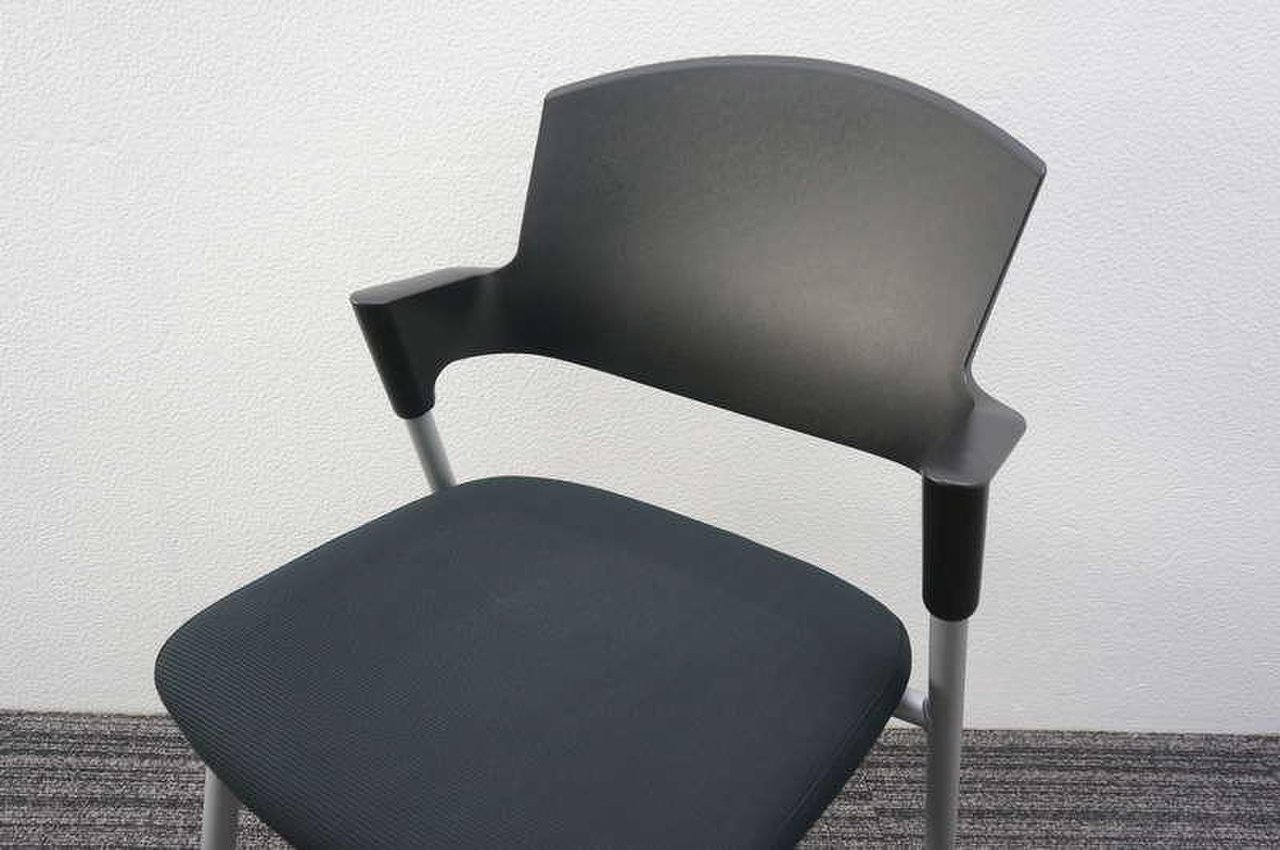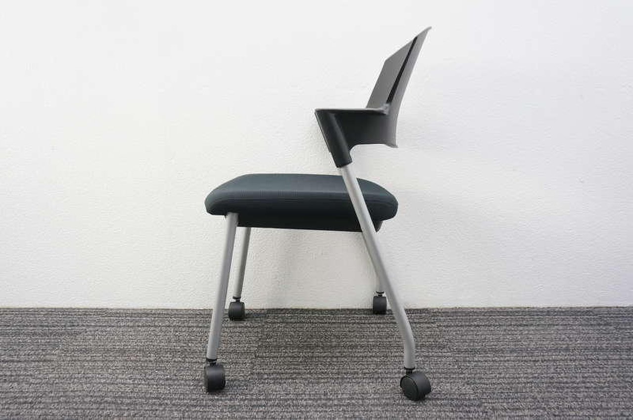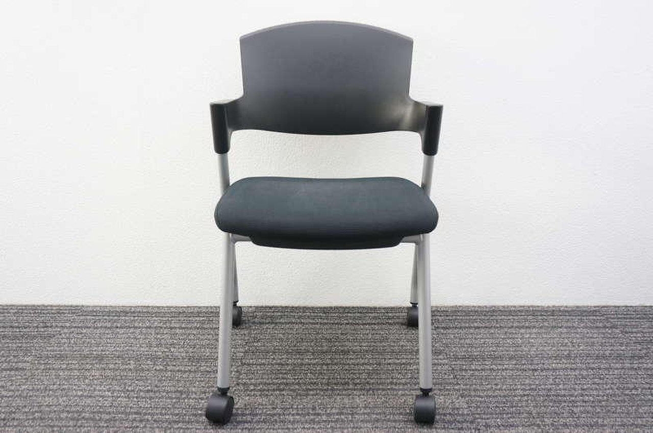 【シンプルスマートなスタッキングチェア!分厚いクッションで長時間でも快適な座り心地!】■スタッキングチェア 肘付ミーティングチェア ■固定肘 ■キャスター付 ■ブラック ■背面樹脂/コクヨ(KOKUYO/プロッティ