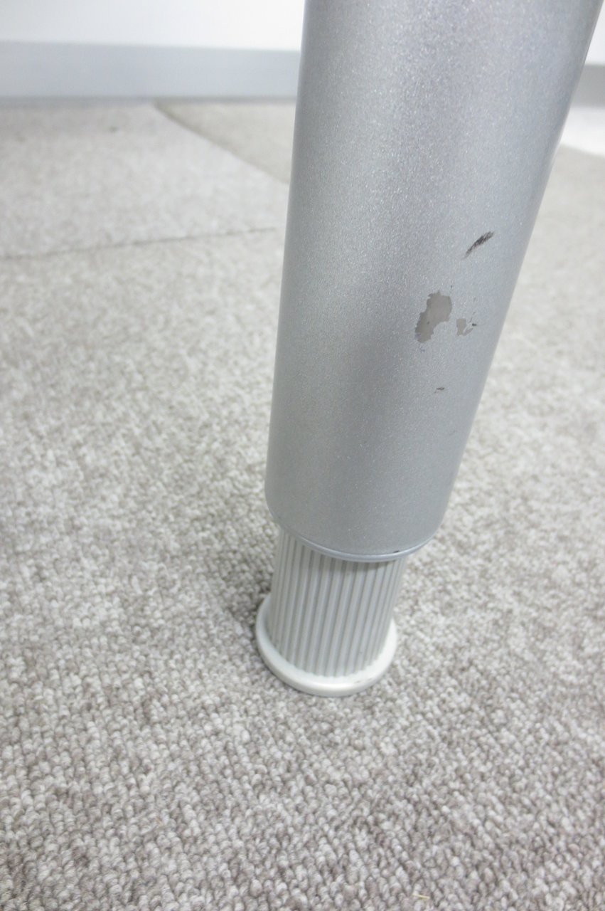 - 一部不具合あり天板歪み、アジャスター無し、キャスター使用不可ようなそのテーブルの本来の効用を果たすための機能以外の一部が使用不可な状態。(例、キャスターロッ ク機能使用不可、棚板無し等がある。)