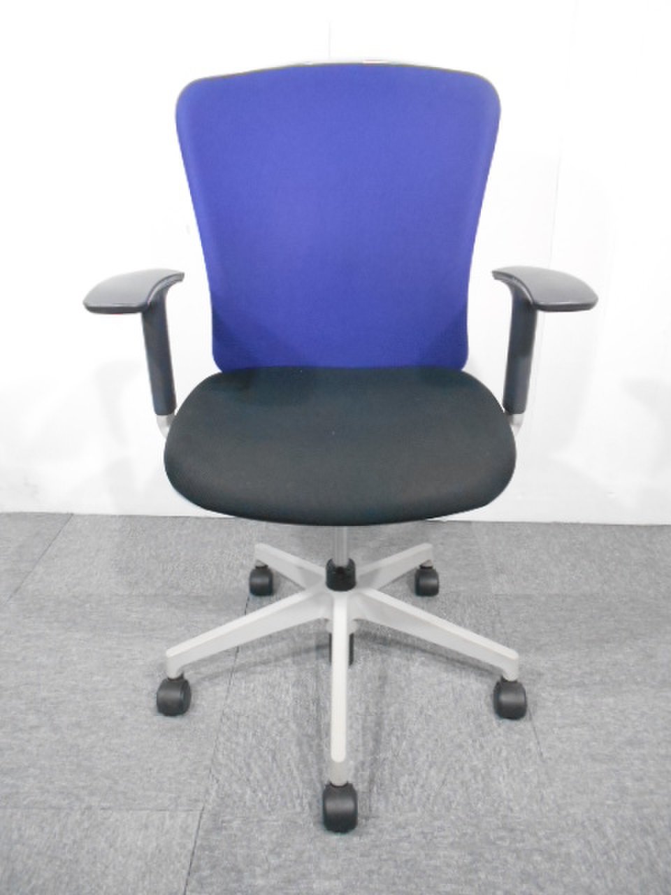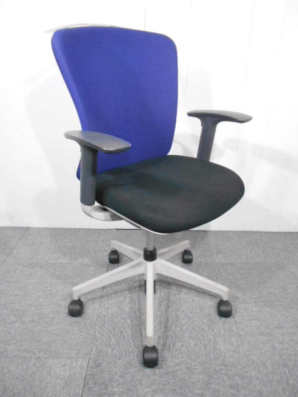 【在庫セール品】【定価約4万円】【ローコストチェアの定番!】【使いやすいスタンダードなデザイン】■イナバ(inaba)製 バルチェ 肘付ハイバック ■可動肘付 ■背面:ブルー×座面:ブラック×グレーシェル