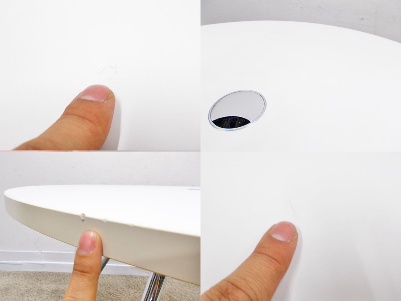 - 一部不具合あり天板歪み、アジャスター無し、キャスター使用不可ようなそのテーブルの本来の効用を果たすための機能以外の一部が使用不可な状態。(例、キャスターロッ ク機能使用不可、棚板無し等がある。)