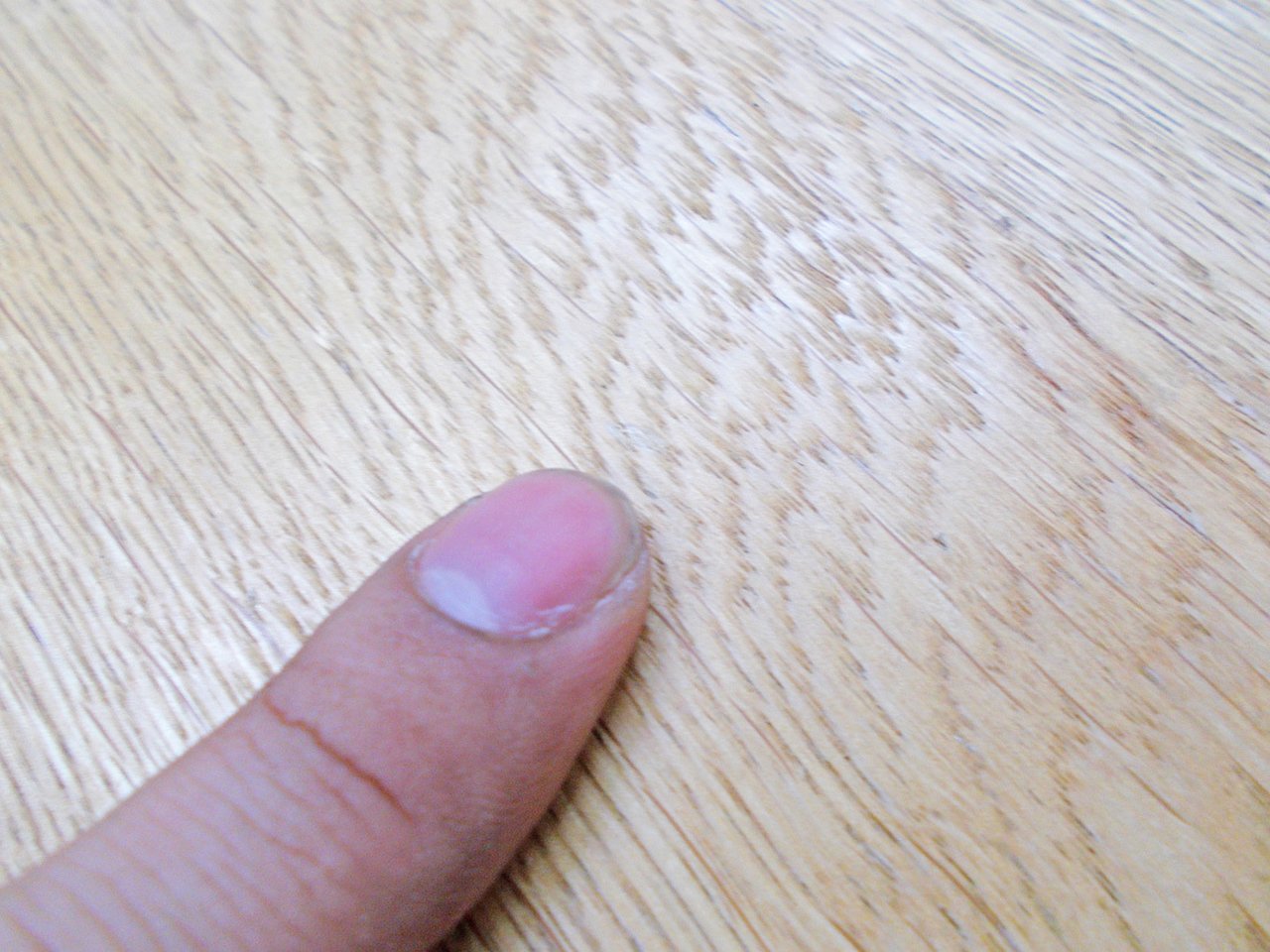 - あり黄ばみ・変色が広い範囲にうっすらある、または濃い黄ばみ・変色が一部ある。(例、天板、幕板、棚板、サイド部分、脚部等にある。)