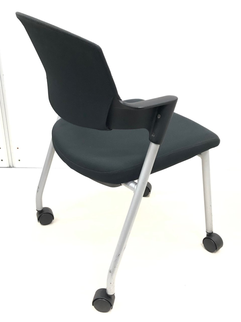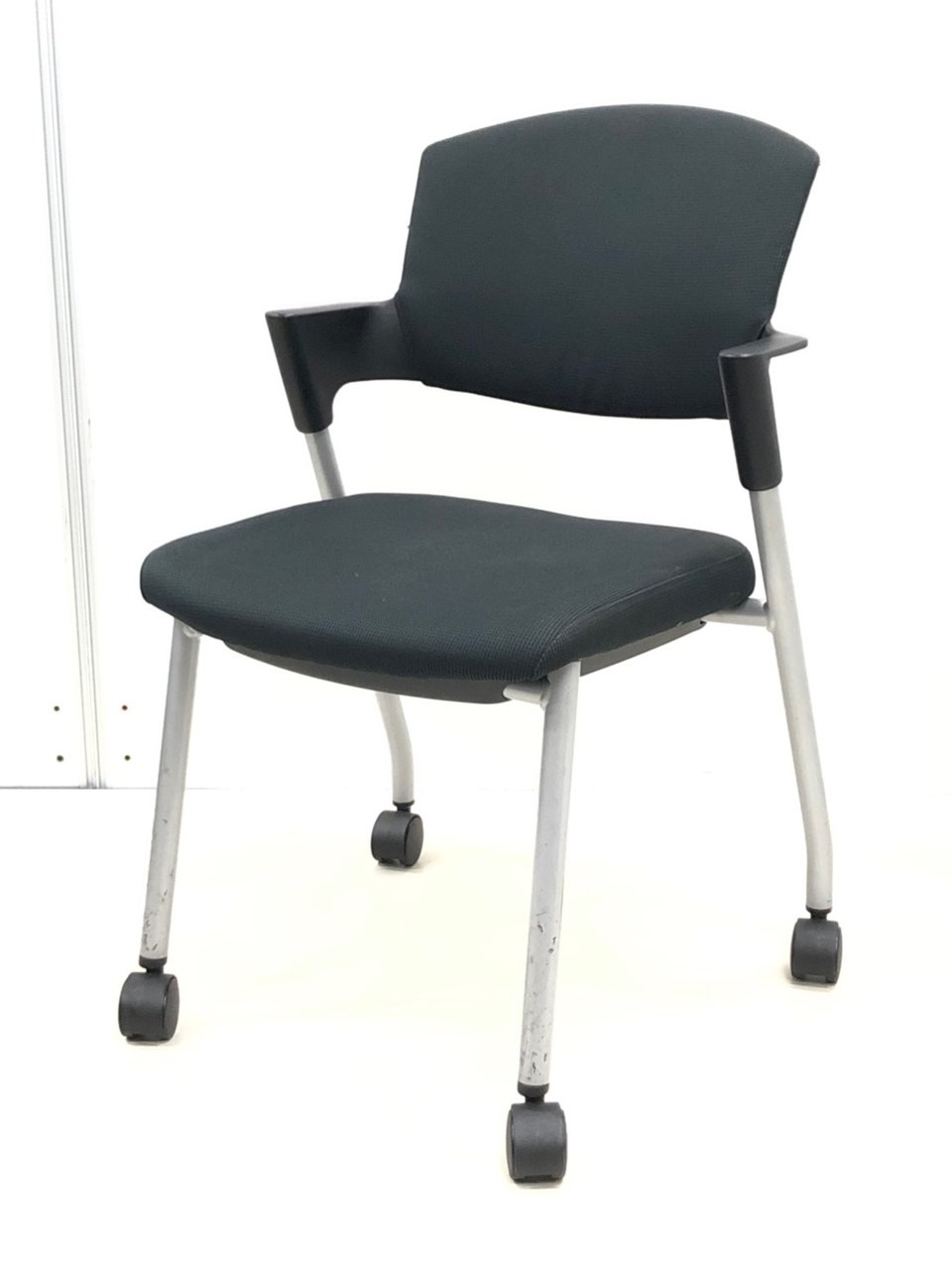 【シンプルスマートなスタッキングチェア!分厚いクッションで長時間でも快適な座り心地!】■スタッキングチェア 肘付ミーティングチェア ■固定肘 ■キャスター付 ■ブラック ■背面樹脂/コクヨ(KOKUYO/プロッティ