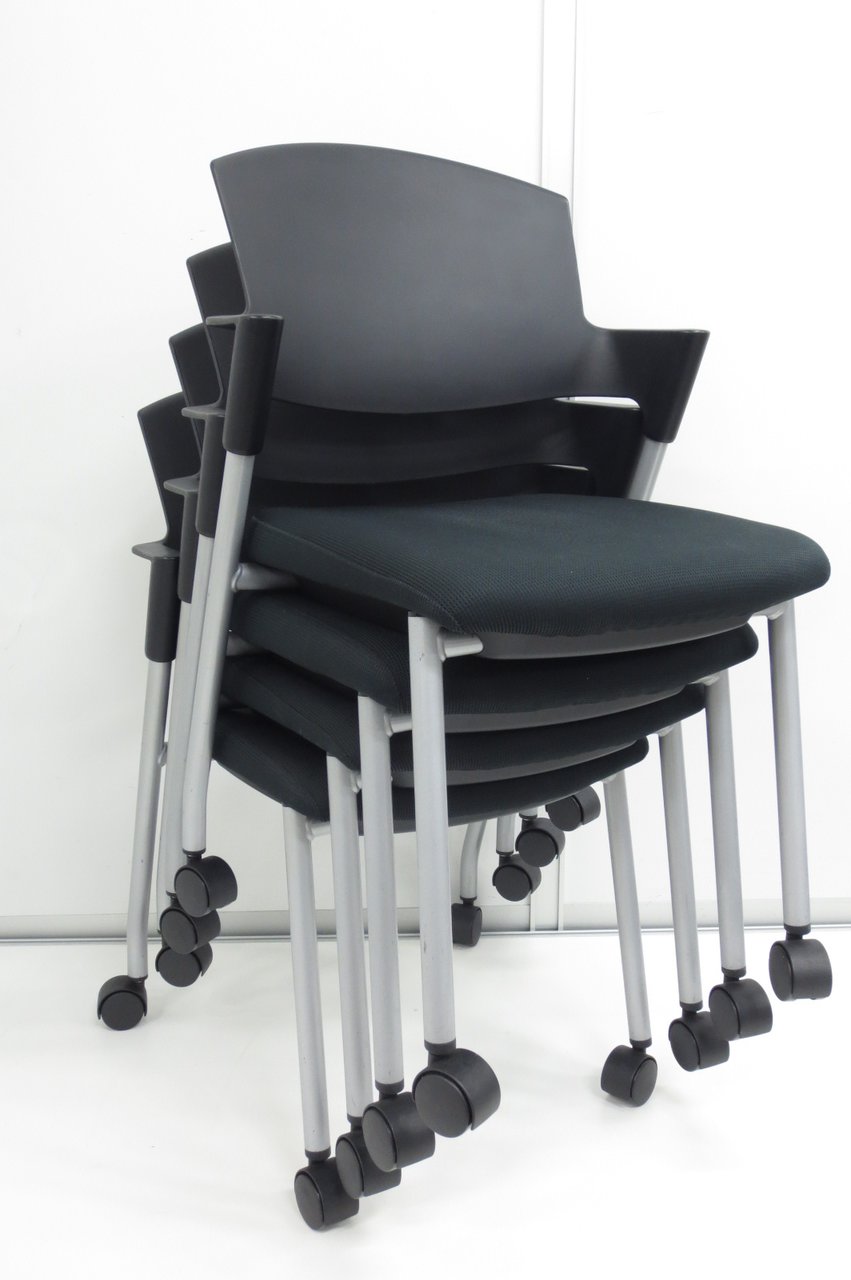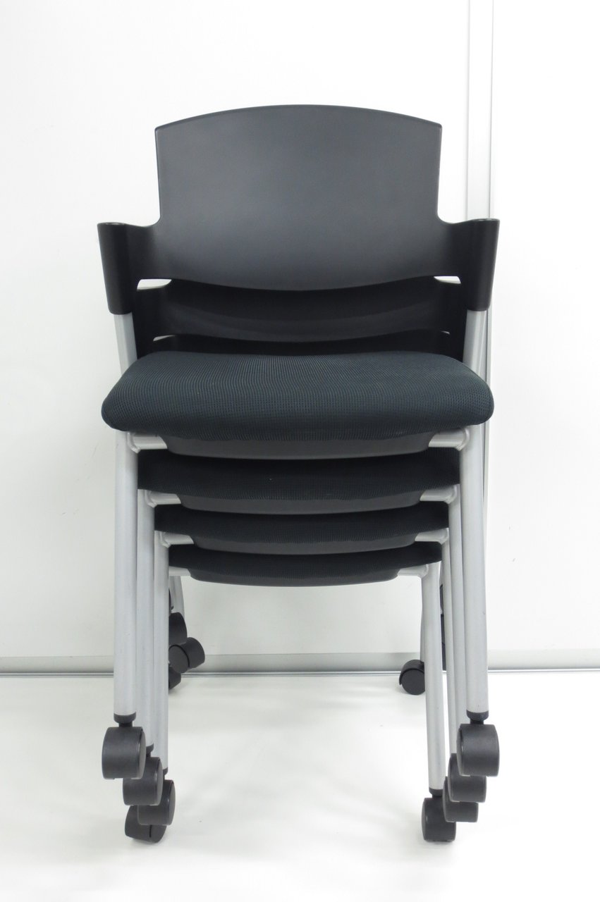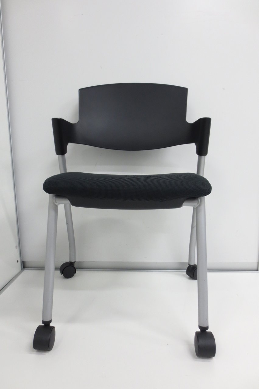 【シンプルスマートなスタッキングチェア!分厚いクッションで長時間でも快適な座り心地!】■スタッキングチェア 肘付ミーティングチェア ■固定肘 ■キャスター付 ■ブラック ■背面樹脂/コクヨ(KOKUYO/プロッティ