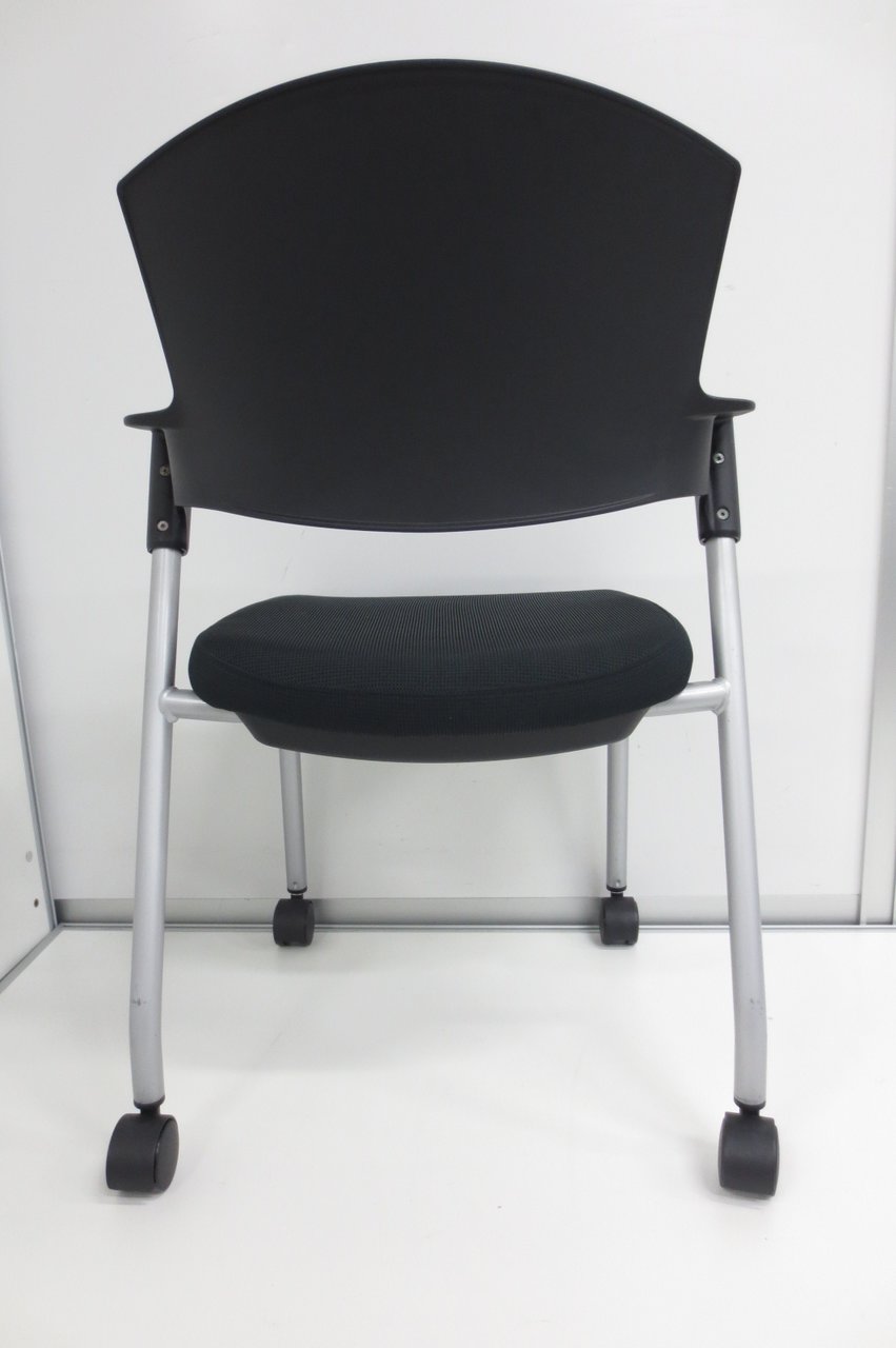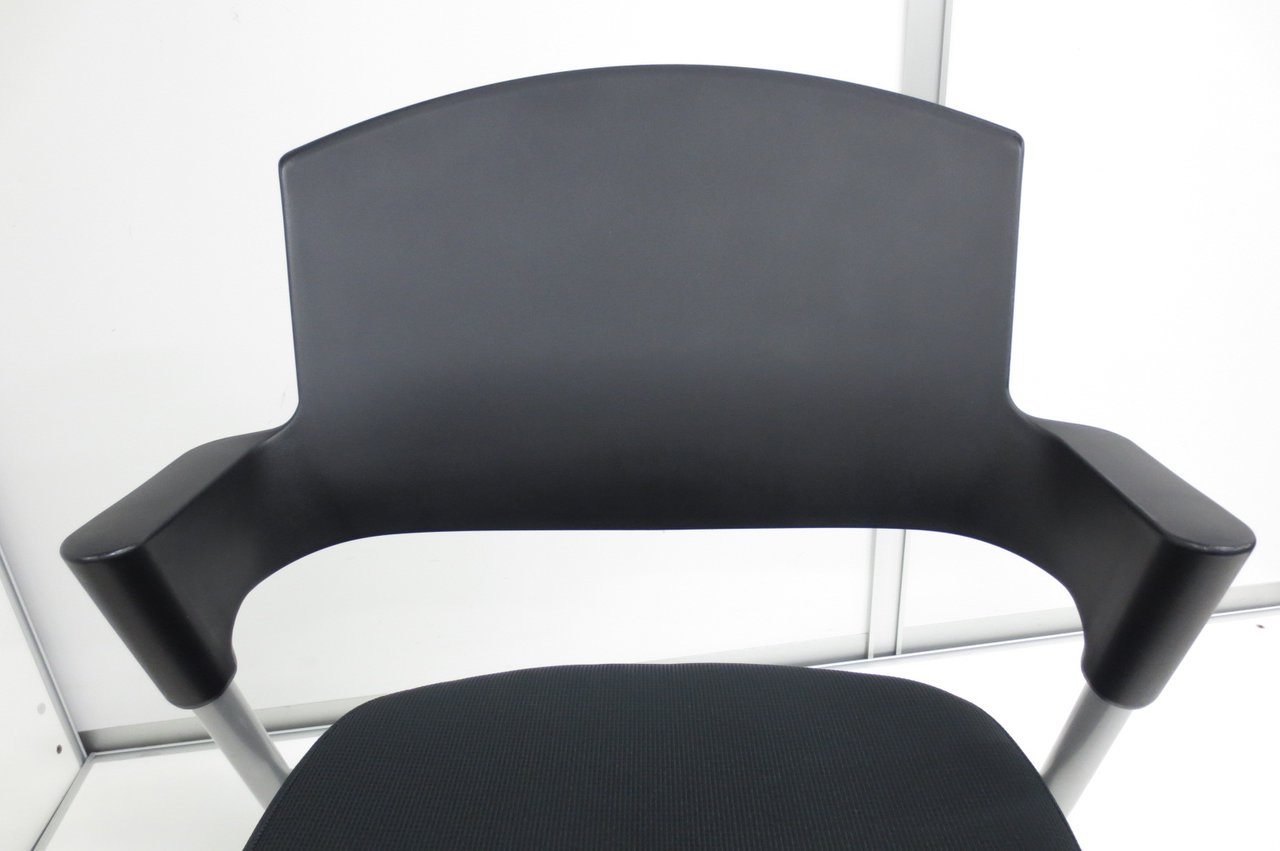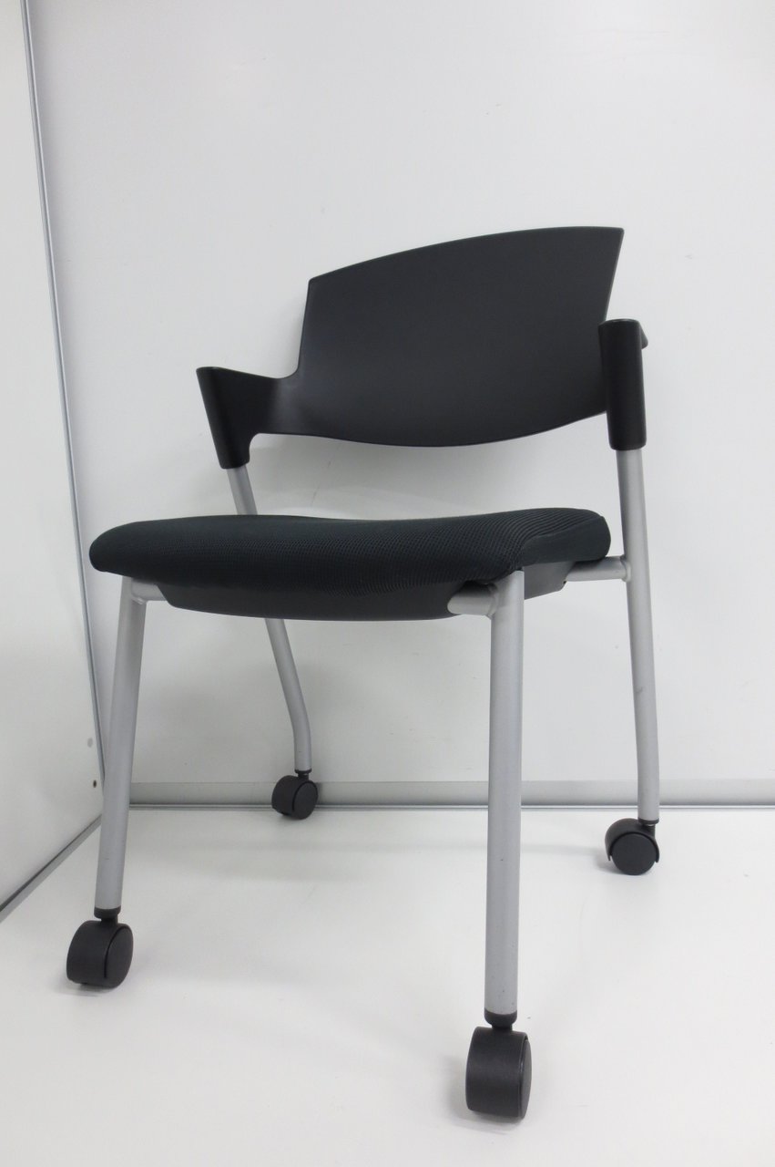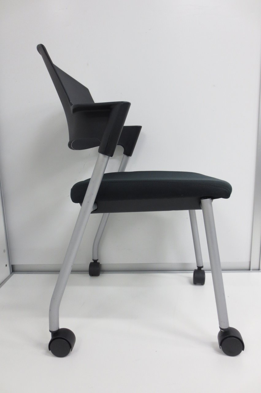 【シンプルスマートなスタッキングチェア!分厚いクッションで長時間でも快適な座り心地!】■スタッキングチェア 肘付ミーティングチェア ■固定肘 ■キャスター付 ■ブラック ■背面樹脂/コクヨ(KOKUYO/プロッティ