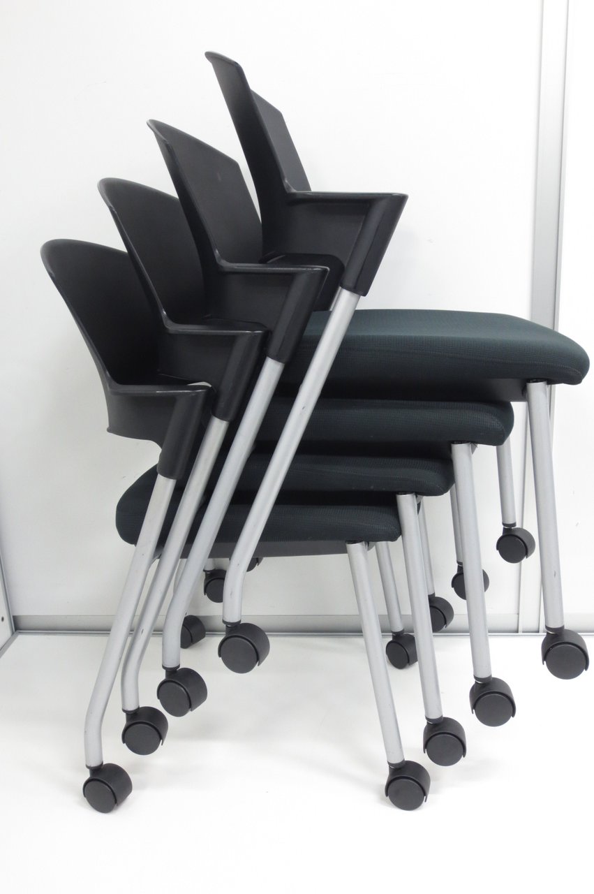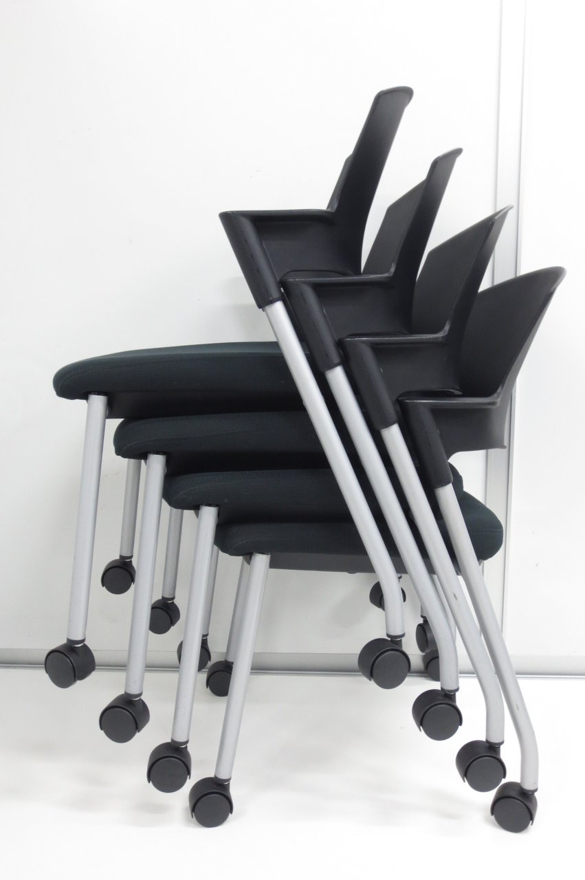 【セット商品(チェア×4脚)】【シンプルスマートなスタッキングチェア!分厚いクッションで長時間でも快適な座り心地!】/オススメ(おすすめ) /人気商品【弊社使用欄:A01037619】■スタッキングチェア 肘付ミーティングチェア ■固定肘 ■キャスター付 ■ブラック ■背面樹脂/コクヨ(KOKUYO/プロッティ