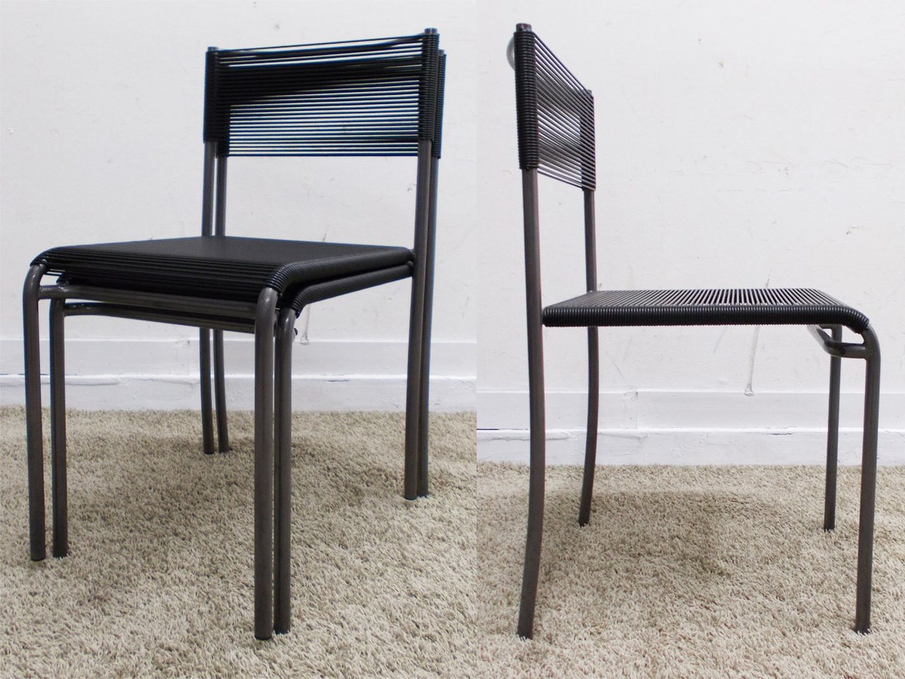 その名が表わすように、背と座はスパゲッティのようなPVC製のコードで一筆書きのように巻かれており、その画期的なデザインからニューヨーク近代美術館のパーマネントコレクションにも選ばれました。