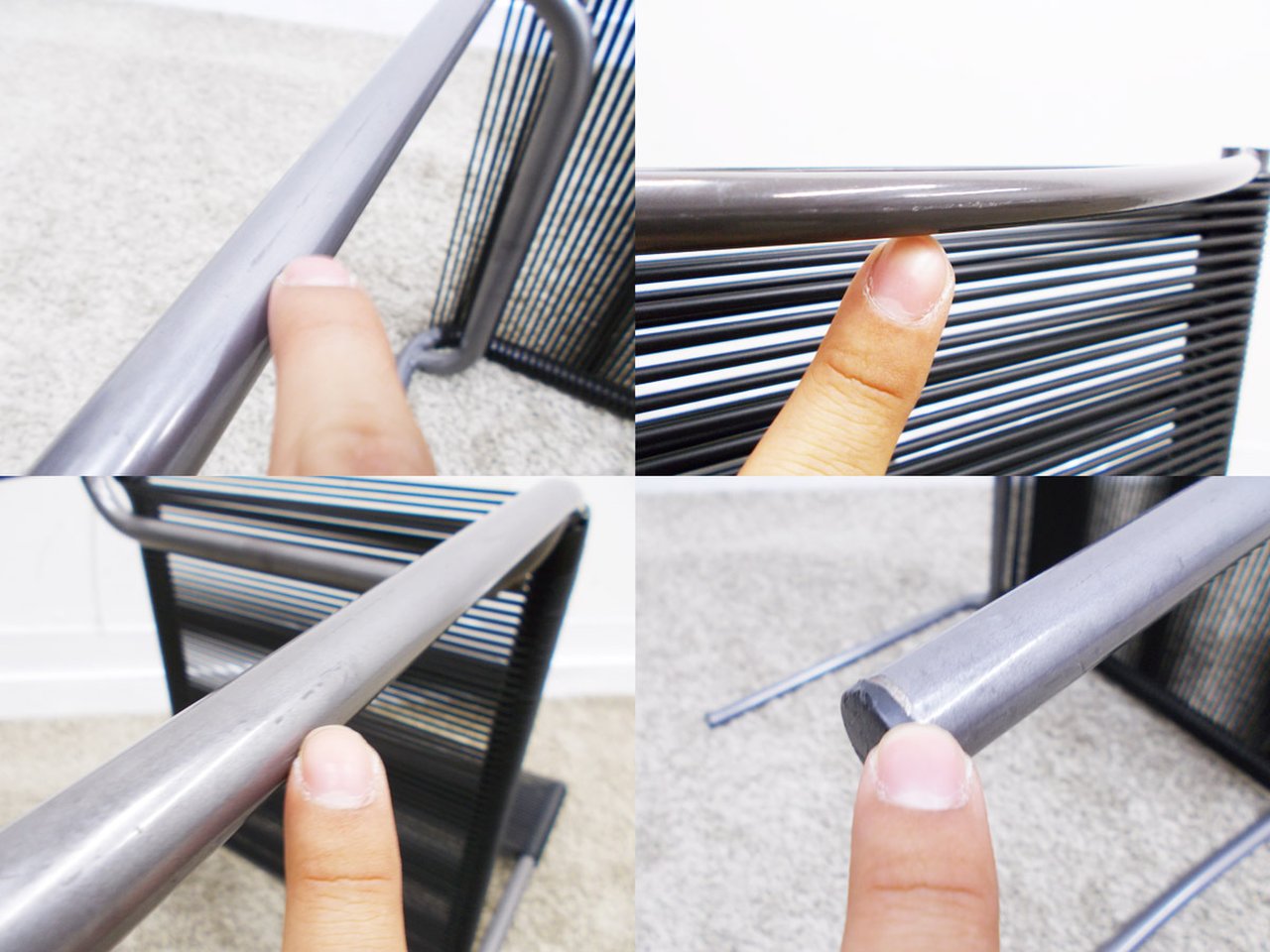 - 目立つ箇所あり傷・破れ・ほつれ・へたり・しわが多数または深い傷・破れ・ほつれ・へたり・しわが一部ある。※座面・背もたれ、シェル、脚部等にある。