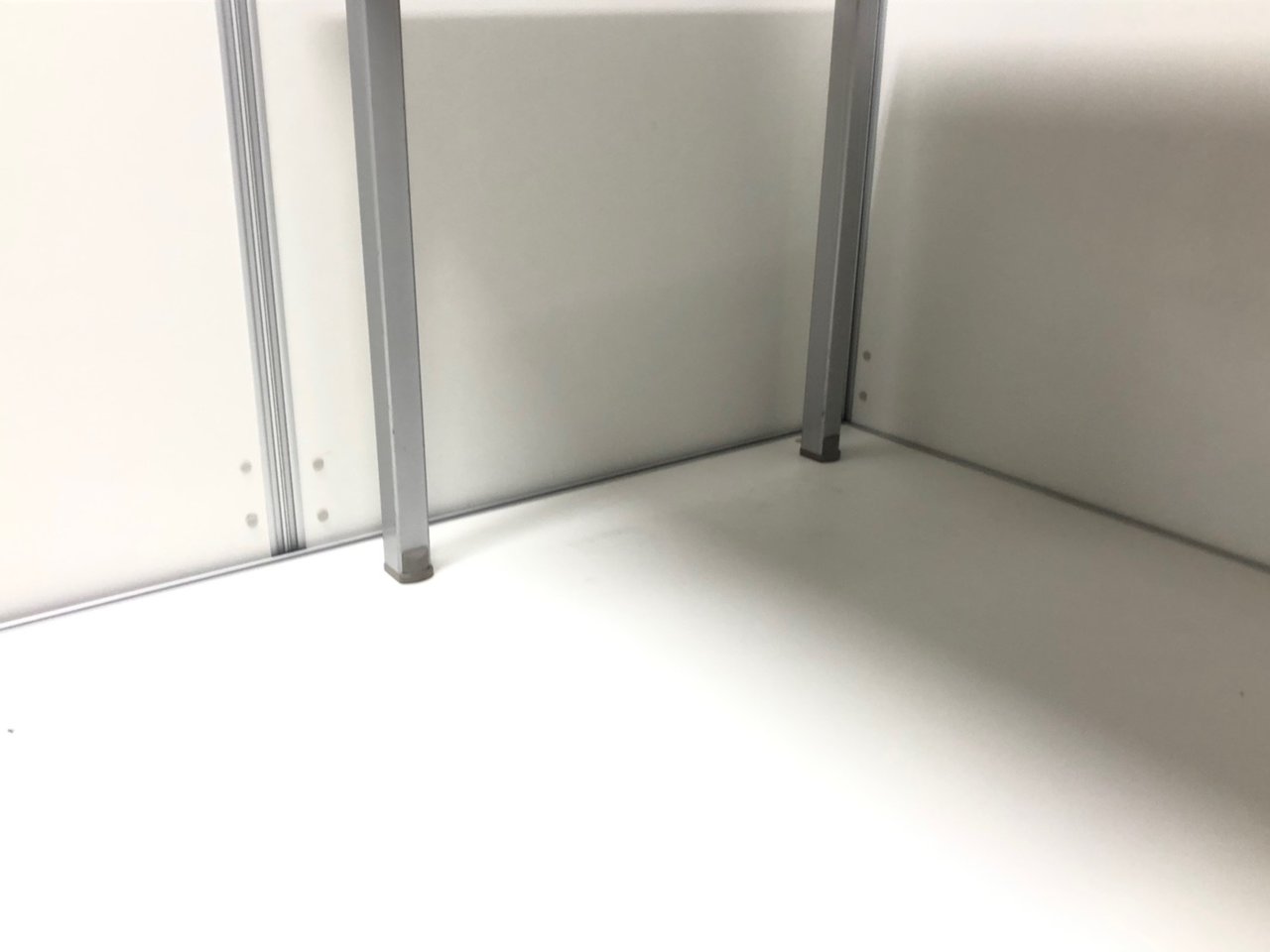 - 一部不具合あり天板歪み、アジャスター無し、キャスター使用不可ようなそのテーブルの本来の効用を果たすための機能以外の一部が使用不可な状態。(例、キャスターロッ ク機能使用不可、棚板無し等がある。)