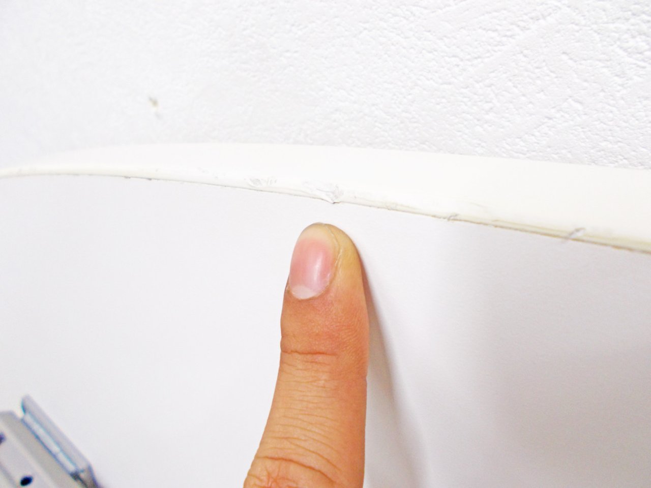 - あり黄ばみ・変色が広い範囲にうっすらある、または濃い黄ばみ・変色が一部ある。(例、天板、幕板、棚板、サイド部分、脚部等にある。)