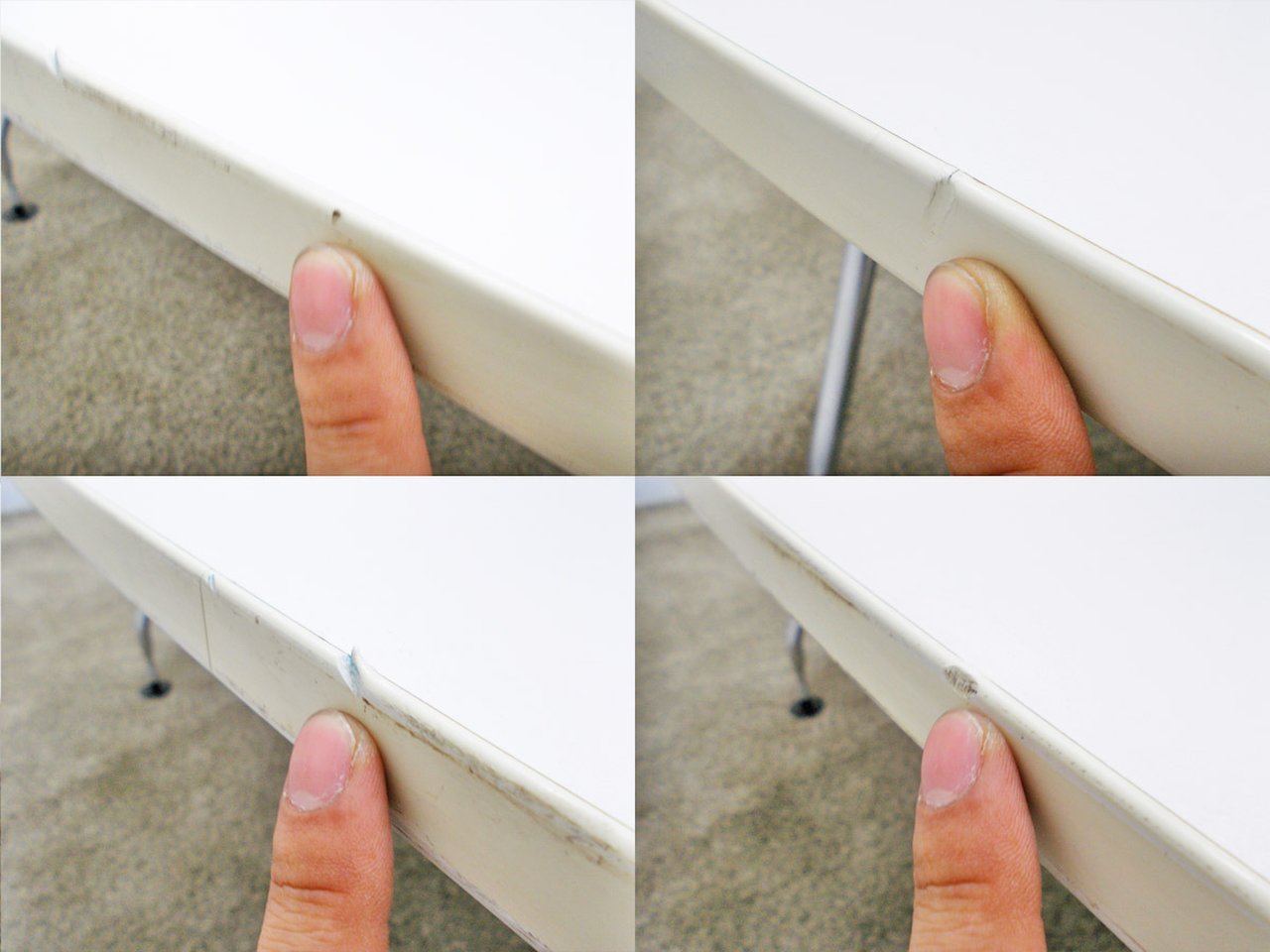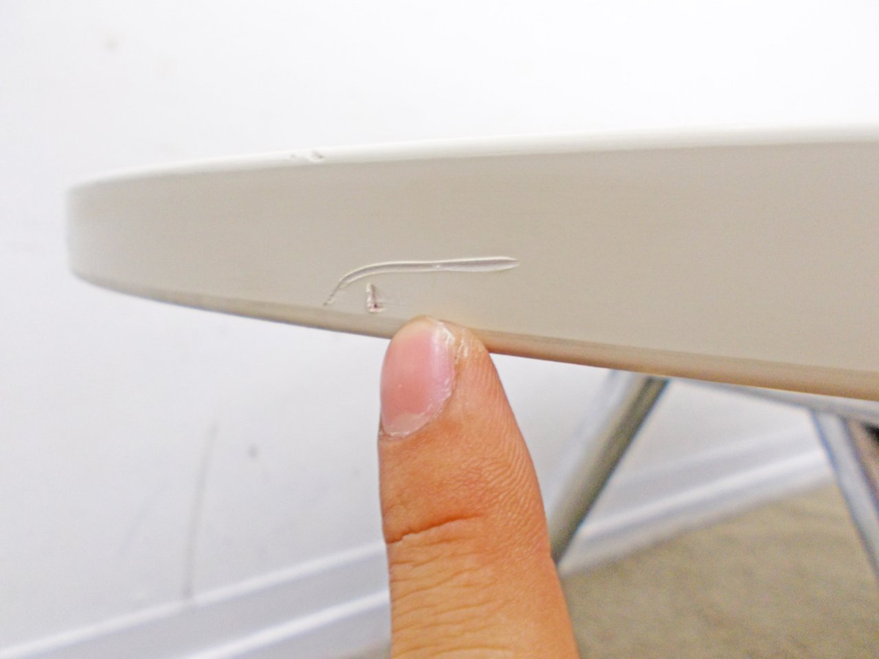 - 壊れている天板歪み、アジャスター無し、キャスター使用不可のようにそのテーブルの本来の効用を果たすための機能に不具合がある。