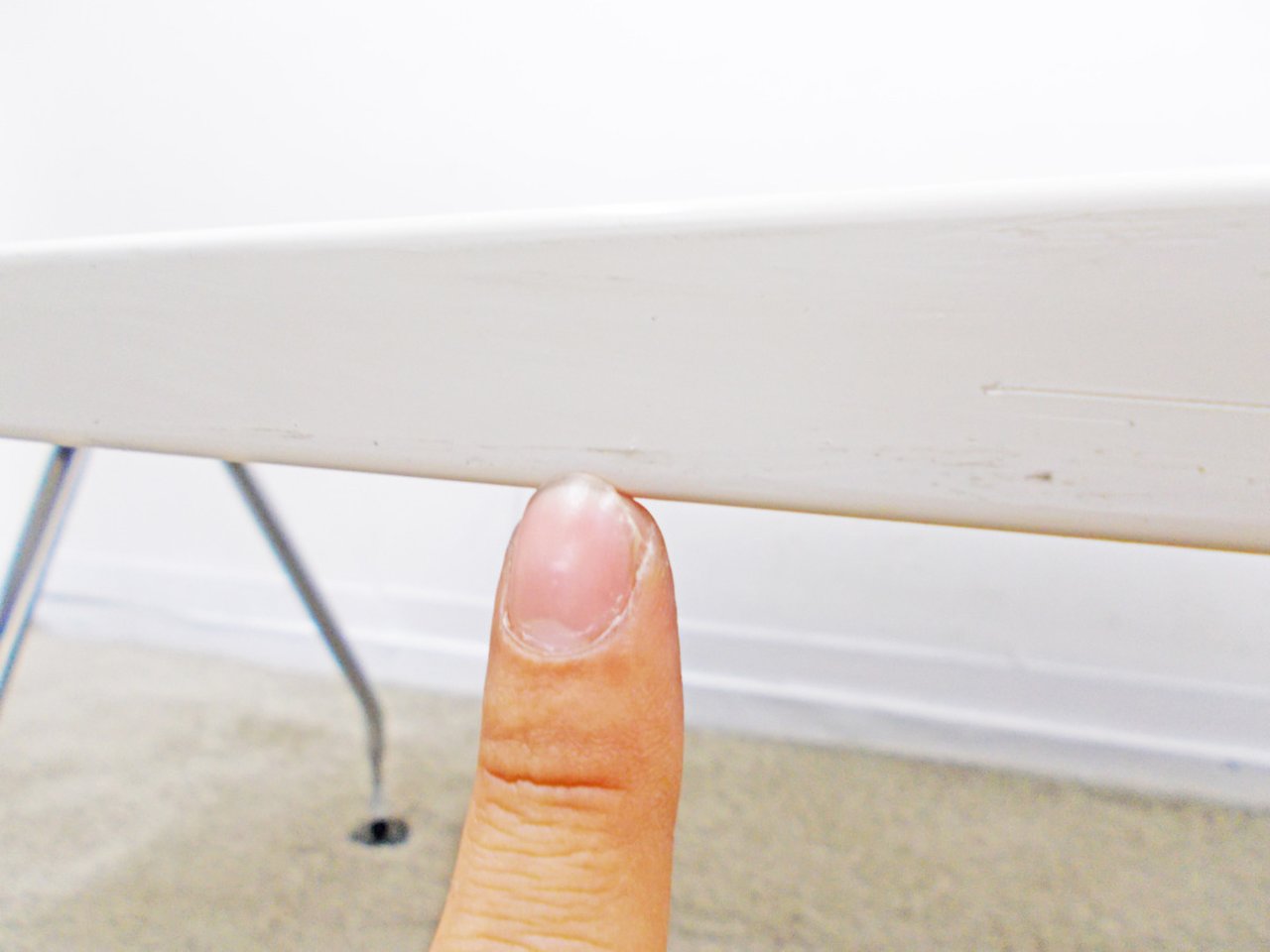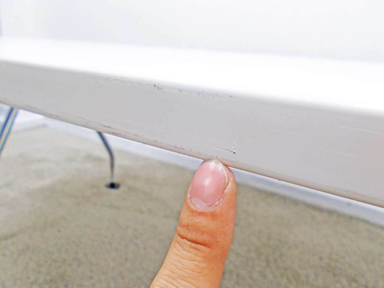 - 目立つ箇所あり傷・凹みが多数、深い傷・凹みが一部ある。(例、天板、幕板、棚板、サイド部分、脚部等にある。)