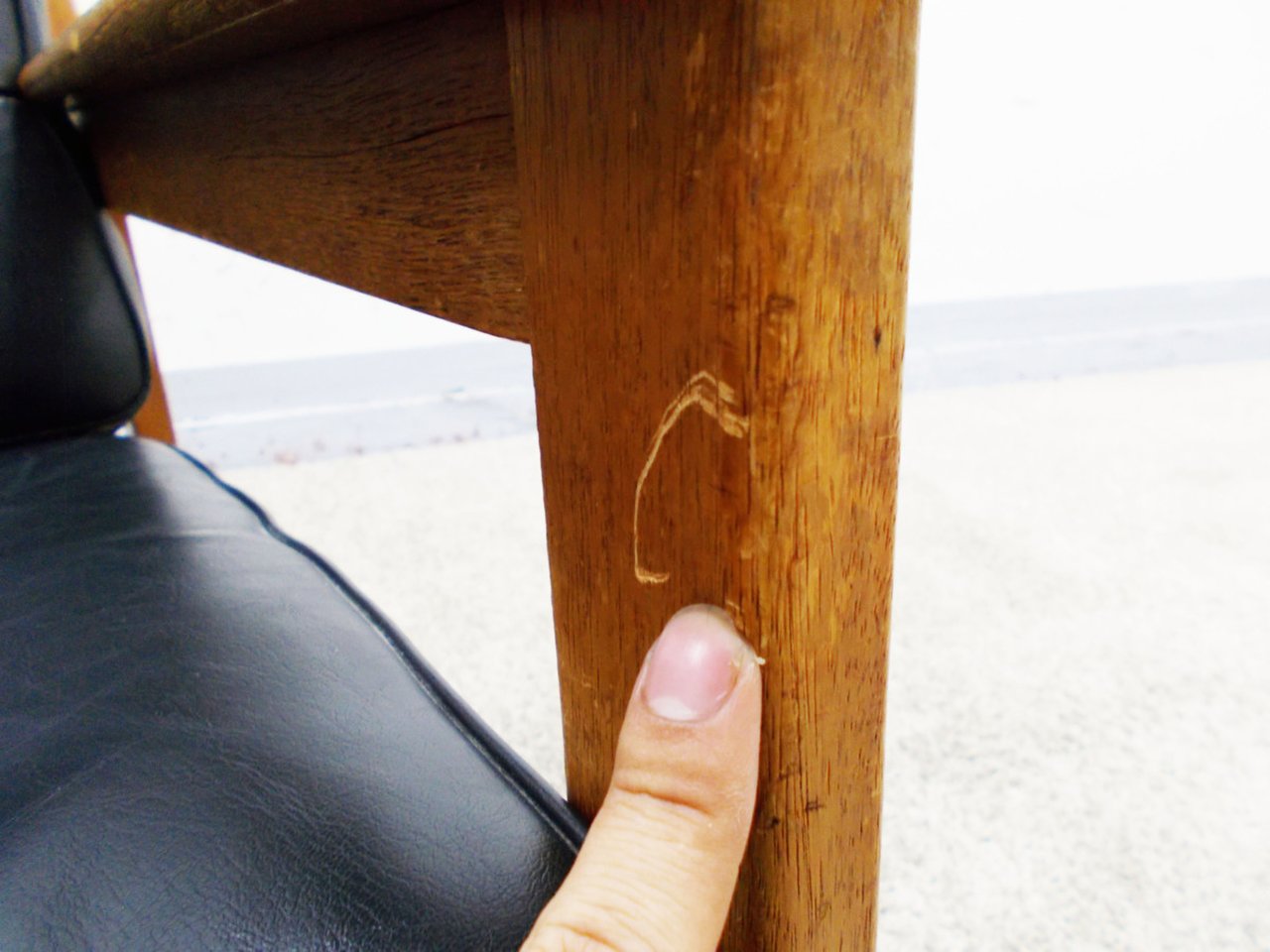 - あり黄ばみ・変色が広い範囲にうっすらある、または濃い黄ばみ・変色が一部ある。(例:三人用ソファ、二人用ソファ、一人用ソファの場合、背もたれ、肘かけ、座面等、 センターテーブルの場合、天板、脚にある。)