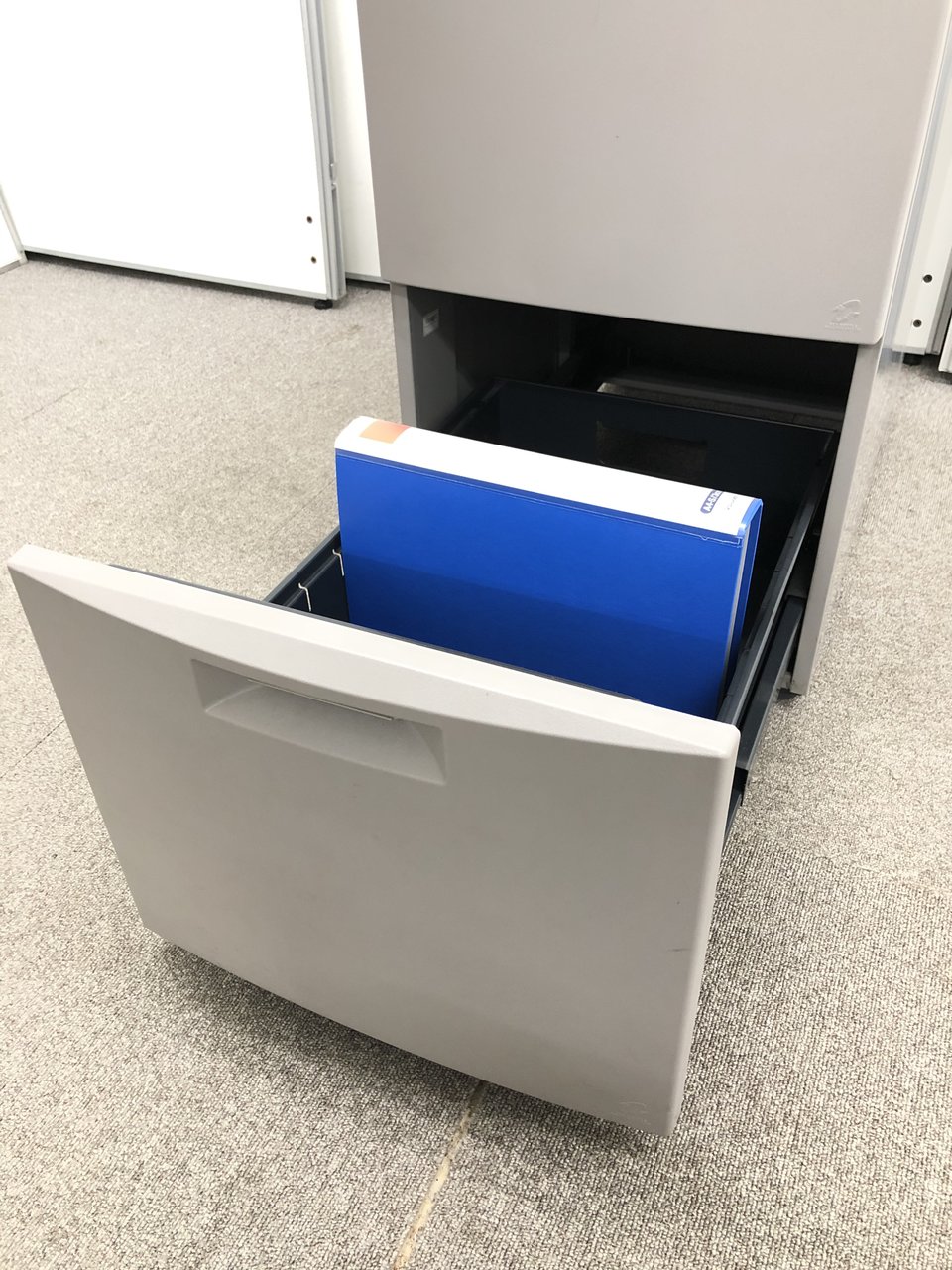 ですがこちらの脇机は2段ともA4ファイルが楽々入るので、デスクの上の書類も綺麗にまとまります!