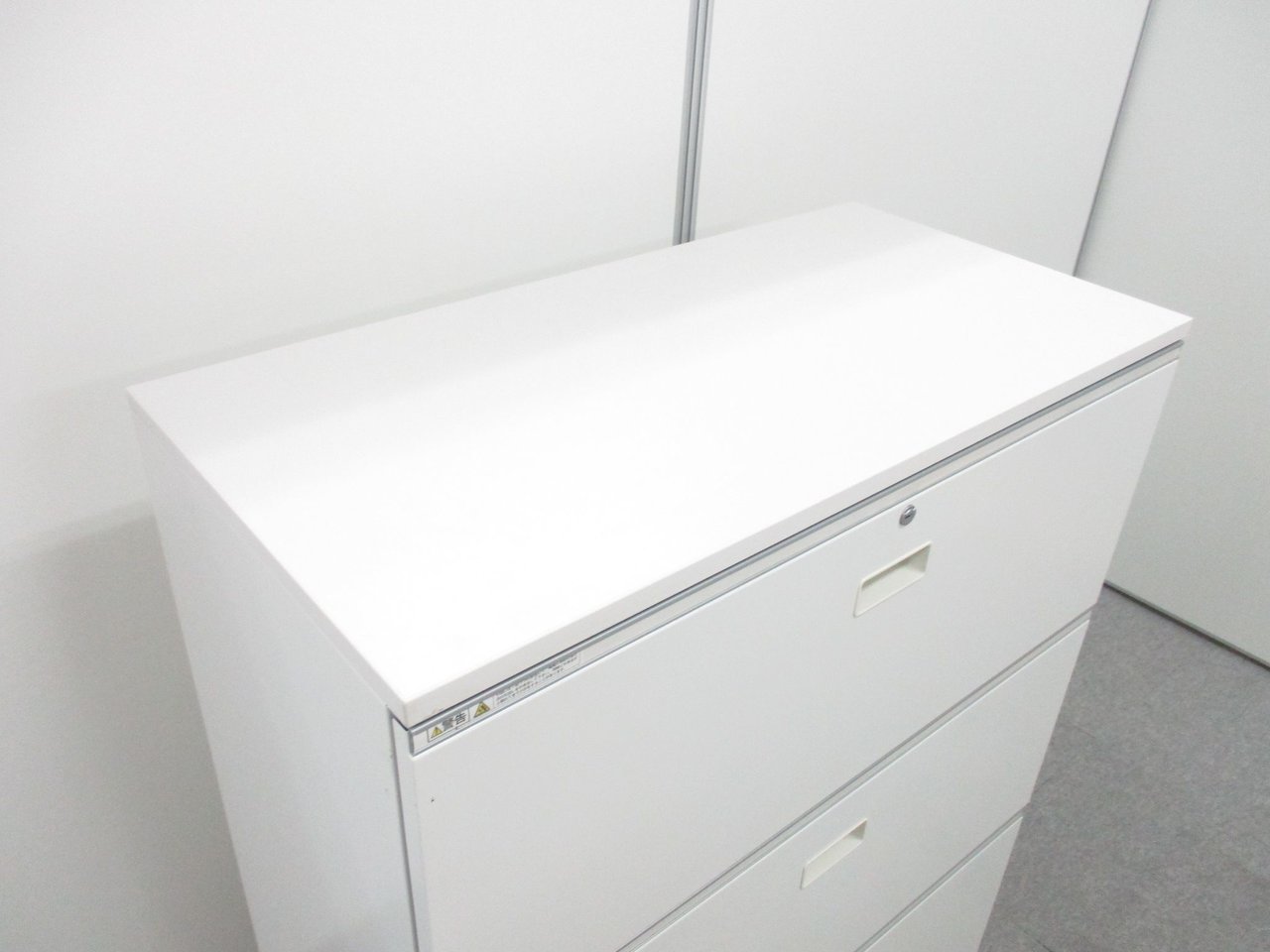 【人気3段ラテラルの小さめサイズ!天板付きのローキャビネット!】■イトーキ(ITOKI)製 シンライン(THIN LIN)シリーズ 3段ラテラル書庫 ローキャビネット ■天板付き ■ホワイト ■シリンダー錠 ※ラッチ日焼け有【AD】