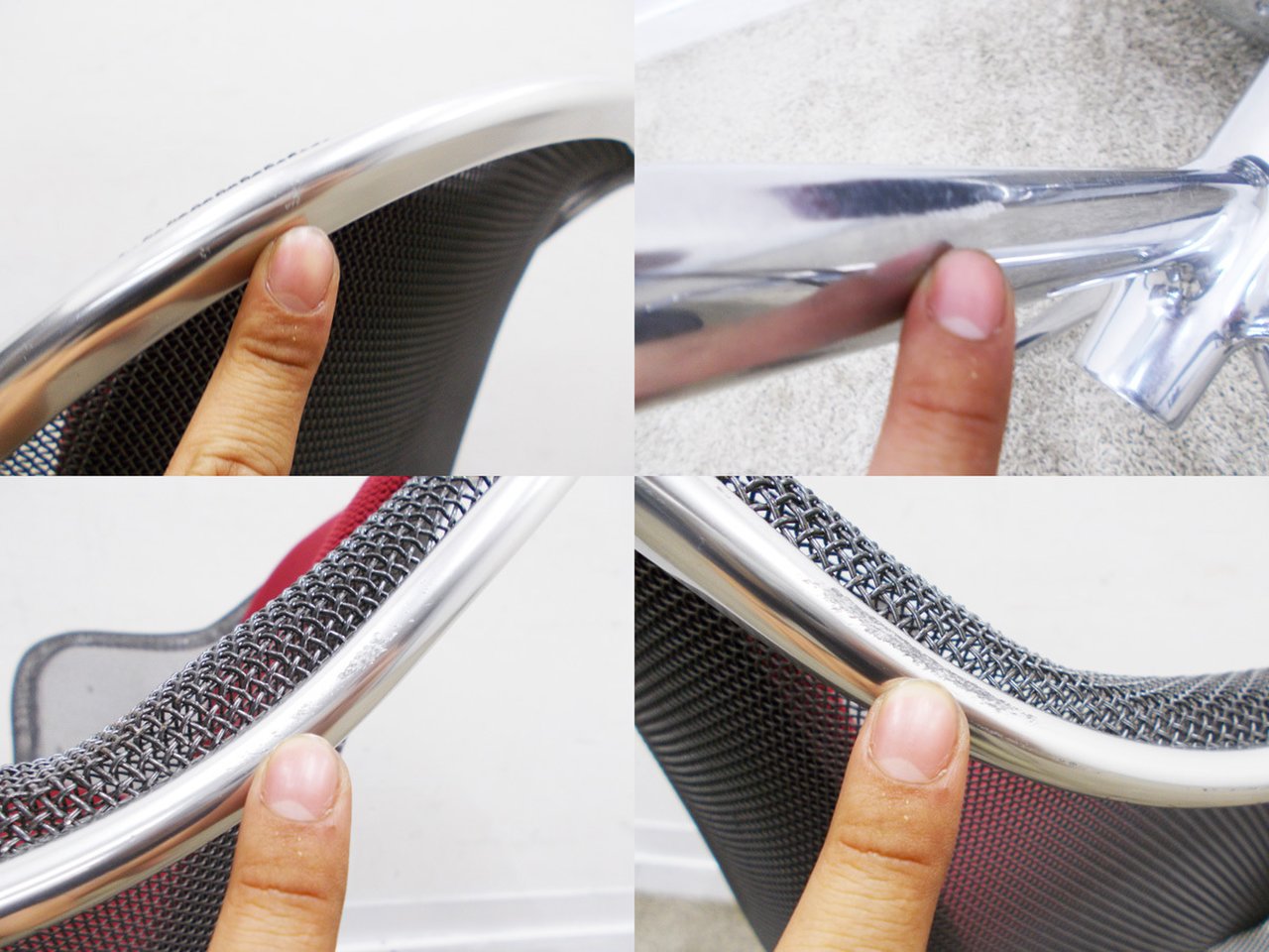 - 目立つ箇所あり傷・破れ・ほつれ・へたり・しわが多数または深い傷・破れ・ほつれ・へたり・しわが一部ある。※座面・背もたれ、シェル、脚部等にある。