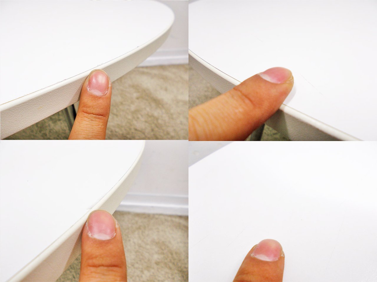 - 壊れている天板歪み、アジャスター無し、キャスター使用不可のようにそのテーブルの本来の効用を果たすための機能に不具合がある。