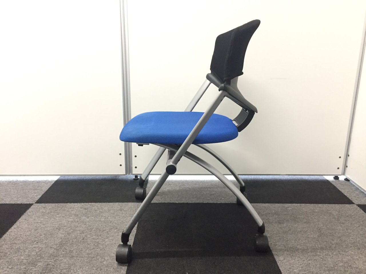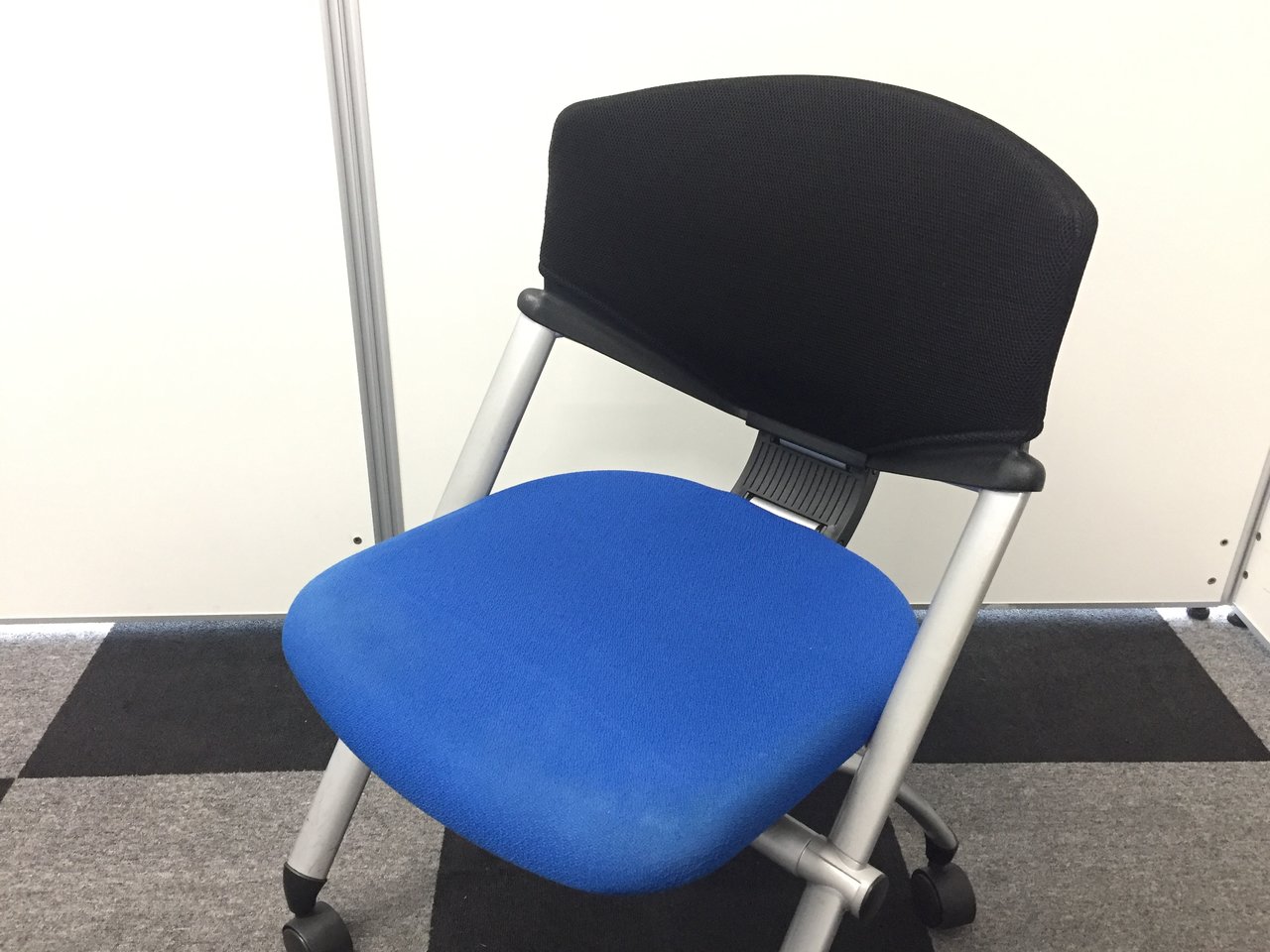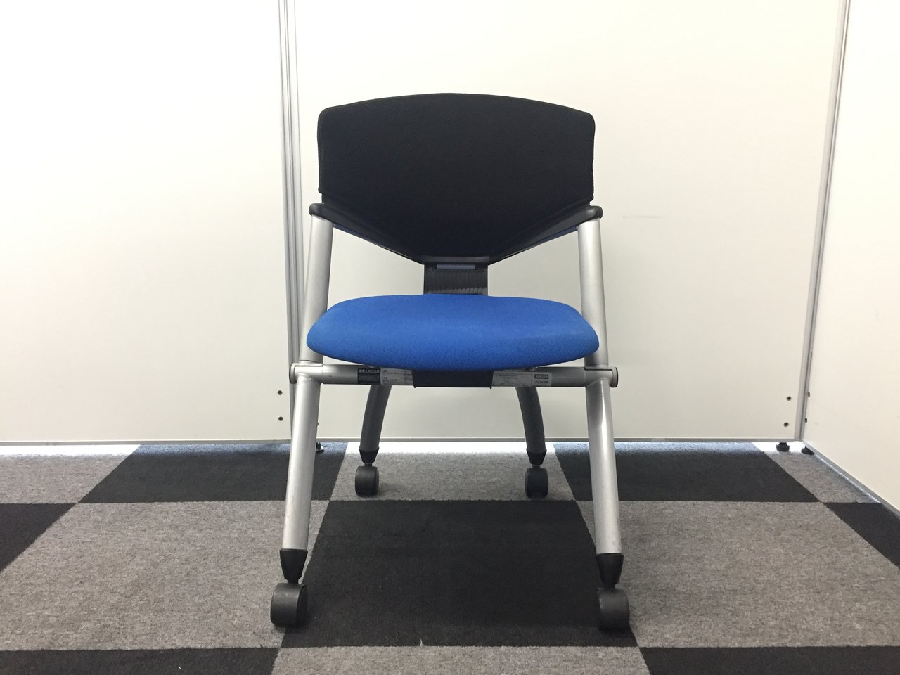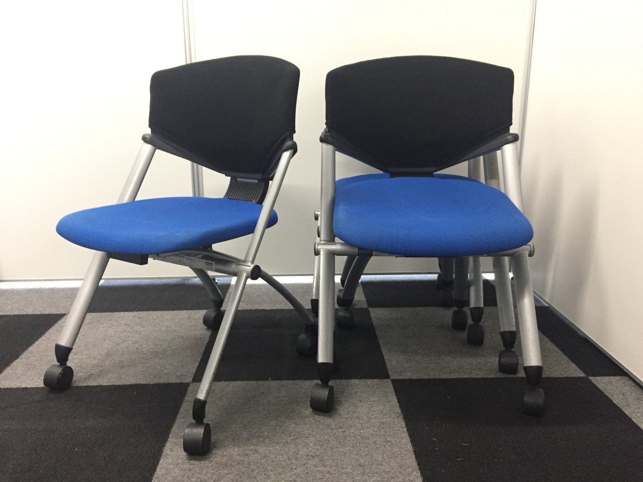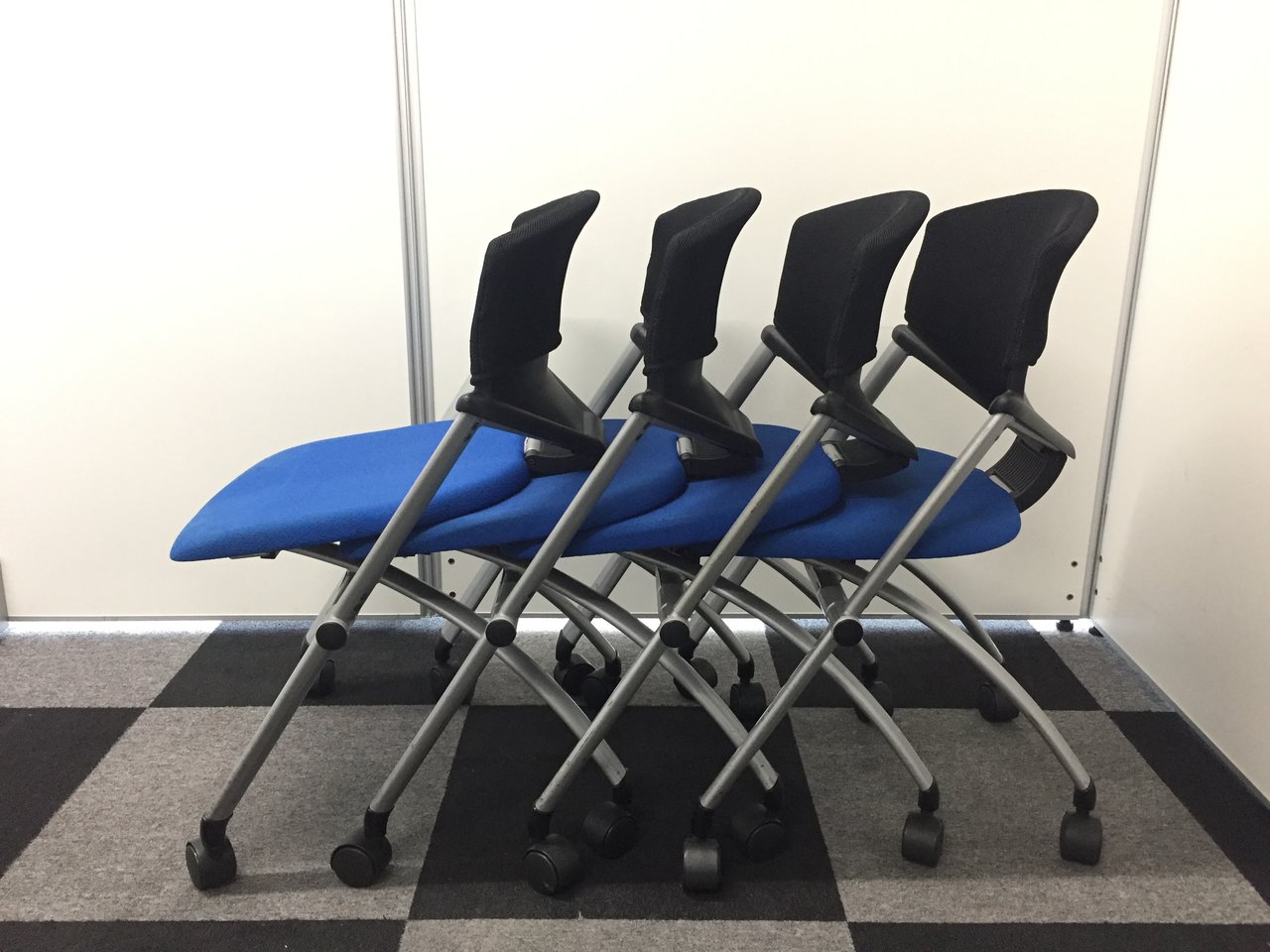コクヨ製のネスティングチェア(平行収納できます)ブルーの定番の会議用チェアです- 在庫数