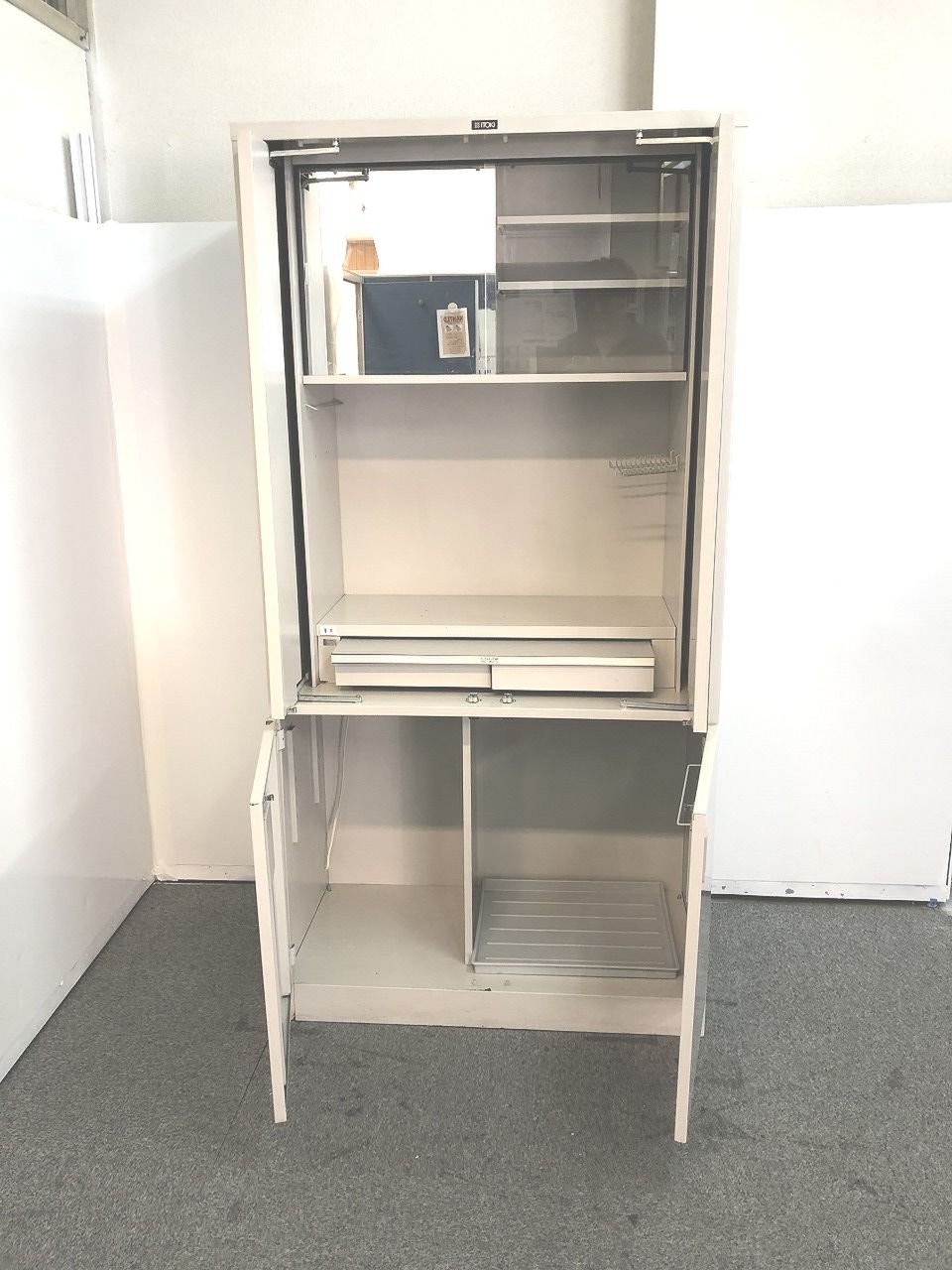 食器棚や収納棚は勿論、レンジ台やポットの収納も可能です。