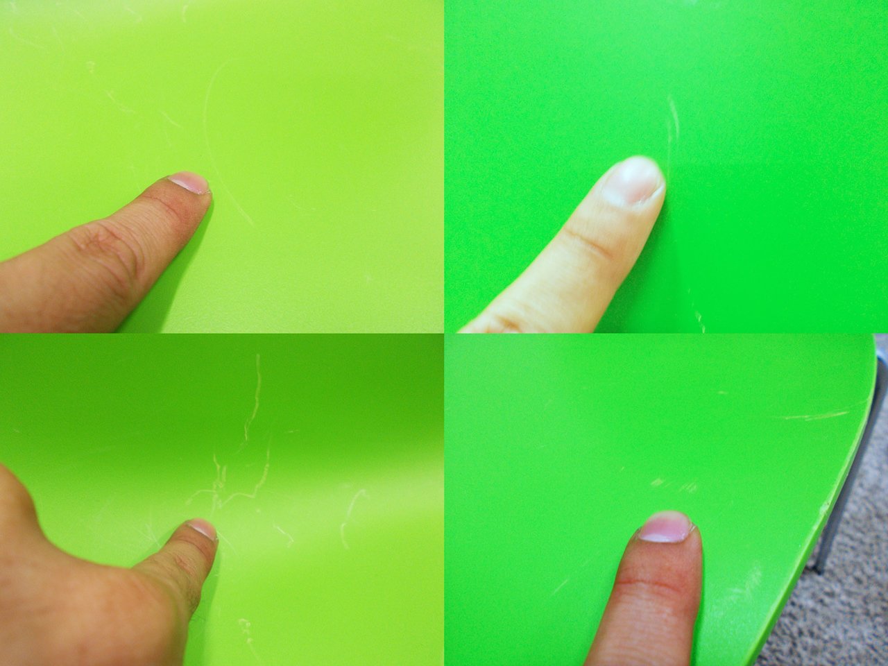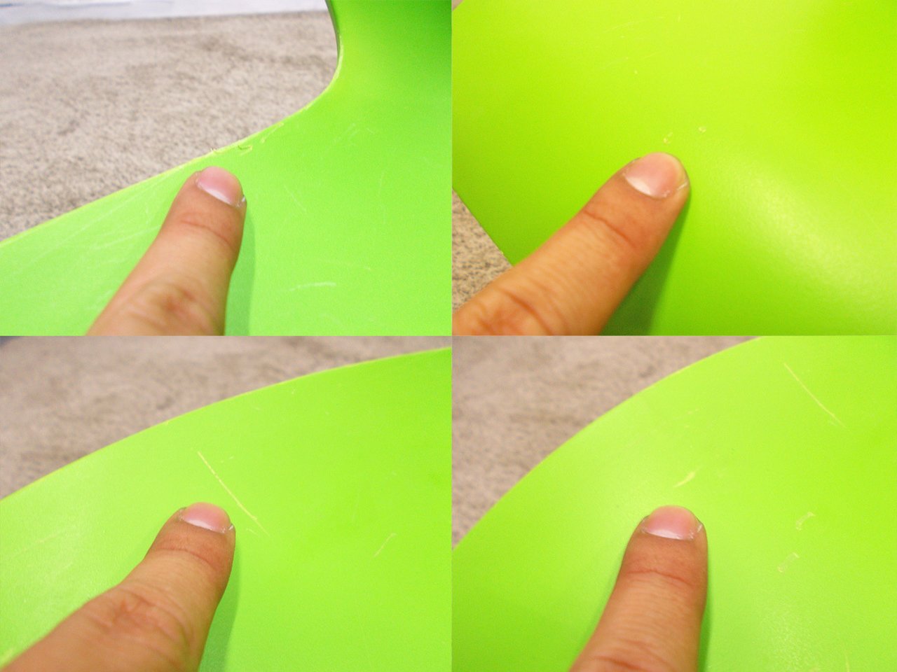 - 目立つ箇所あり傷・破れ・ほつれ・へたり・しわが多数または深い傷・破れ・ほつれ・へたり・しわが一部ある。※座面・背もたれ、シェル、脚部等にある。