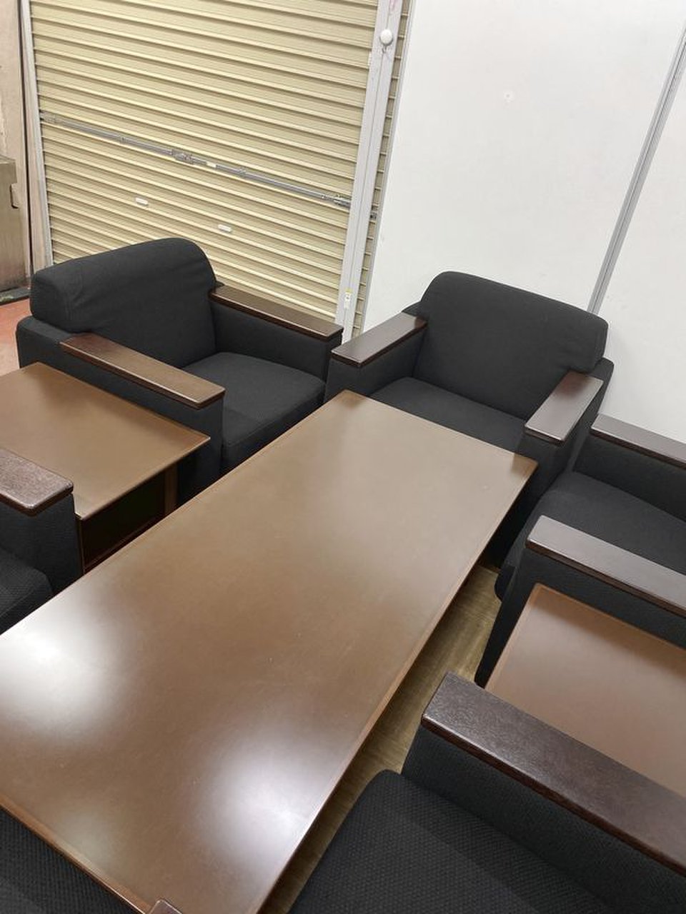 - 若干ありソファの場合、破け、ホツレ、へたり、しわ等が一部ある。(例、背もたれ、肘かけ、座面等にある。)センターテーブルの場合、傷・凹みが一部ある。(例、天板、 脚にある。)