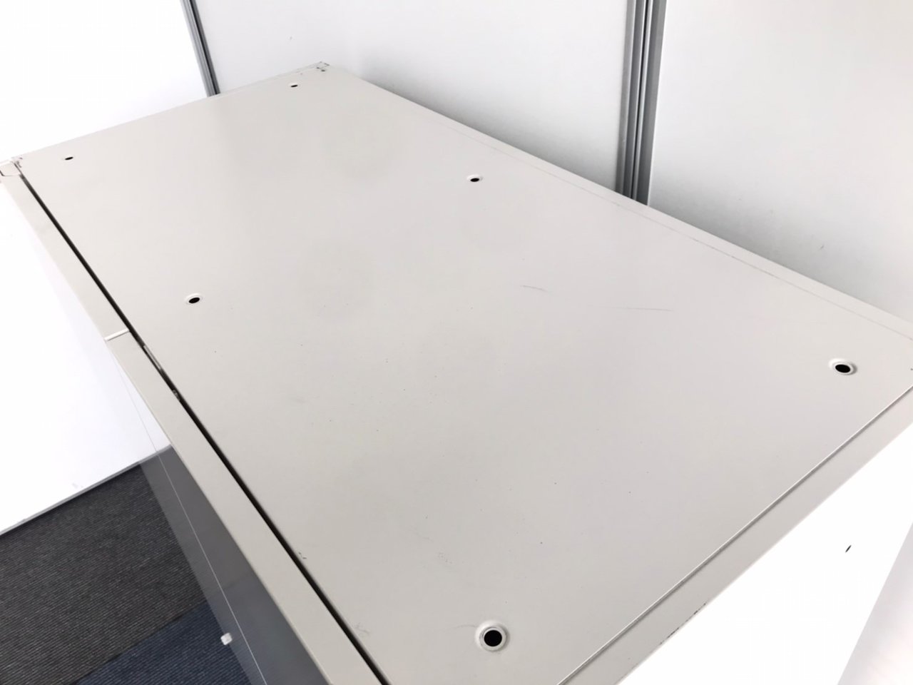 【カウンター代わりにもなるサイズ感!】■オカムラ レクトラインシリーズ 両開き書庫 H950mmタイプ ライトスモーク