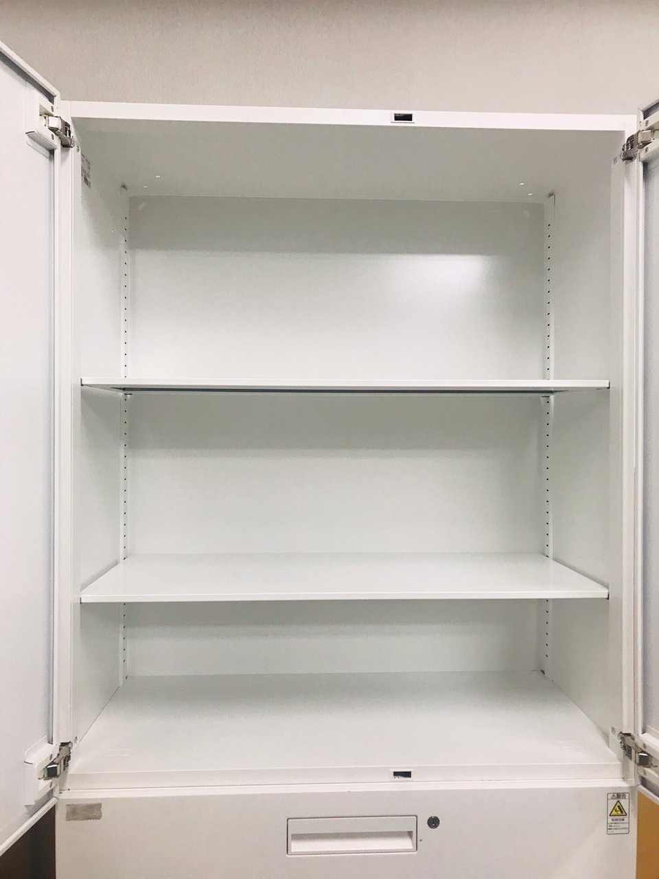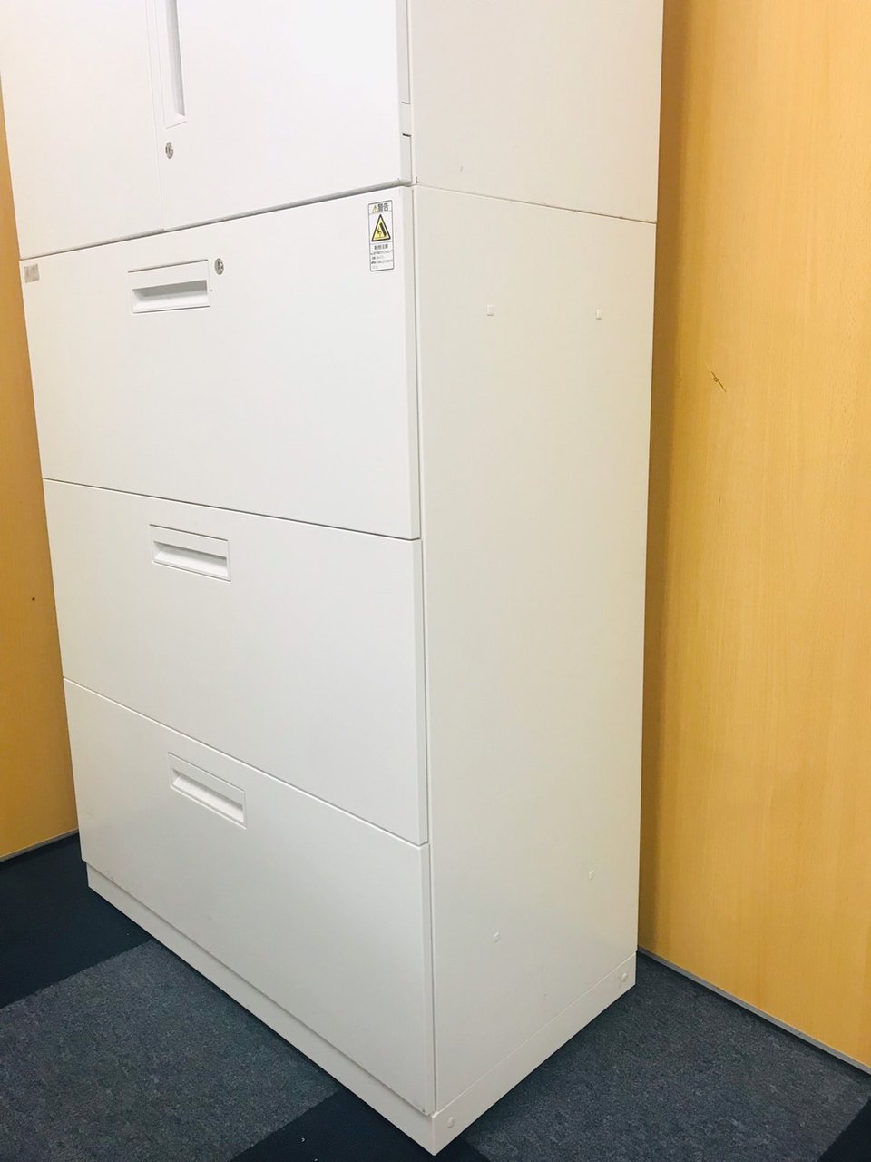 - 一部不具合ありそ引出の開閉不可、施錠不可、棚板無しといったの書庫の本来の効用を果たすための機能以外の一部が使用不可(例、扉、引出の開閉がしづらいなどがある。 )