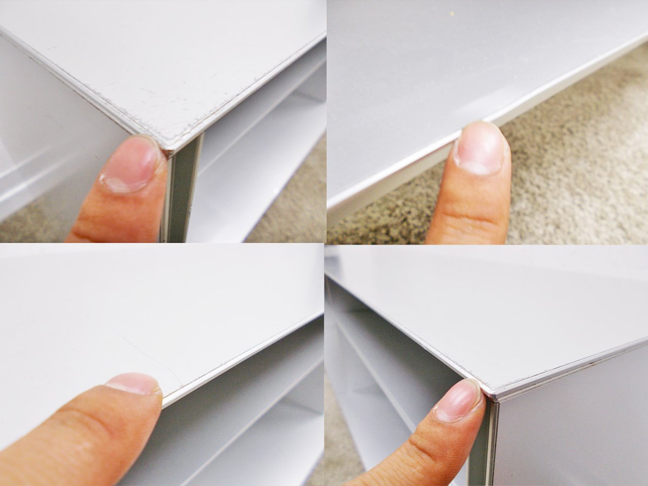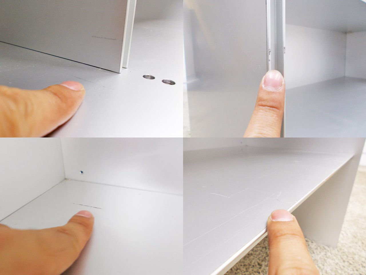 - 目立つ箇所あり傷・凹みが多数、深い傷・凹みが一部ある。(例、天板、正面、背部、サイド部分にある。)
