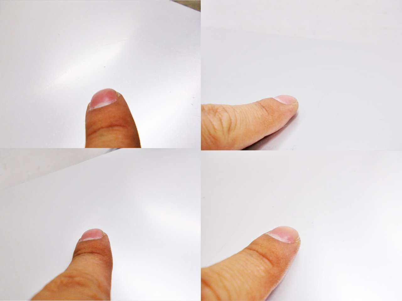 - あり黄ばみ・変色が広い範囲にうっすらある、または濃い黄ばみ・変色が一部ある。(例、天板、正面、背部、サイド部分にある。)