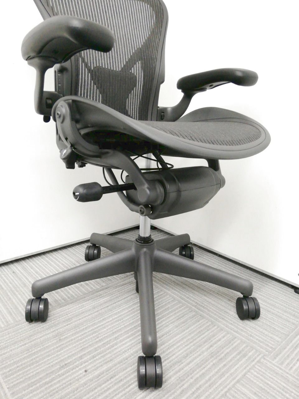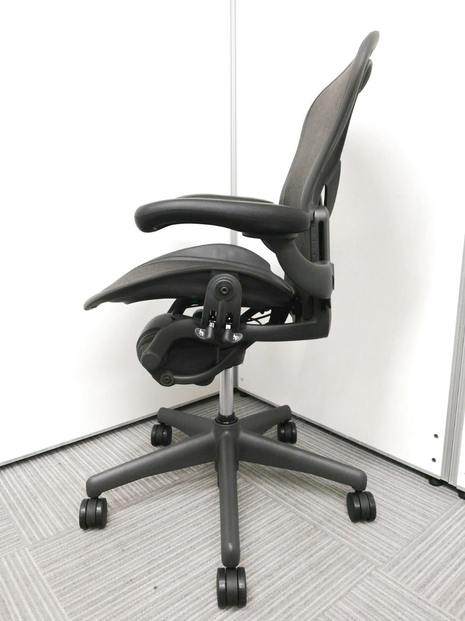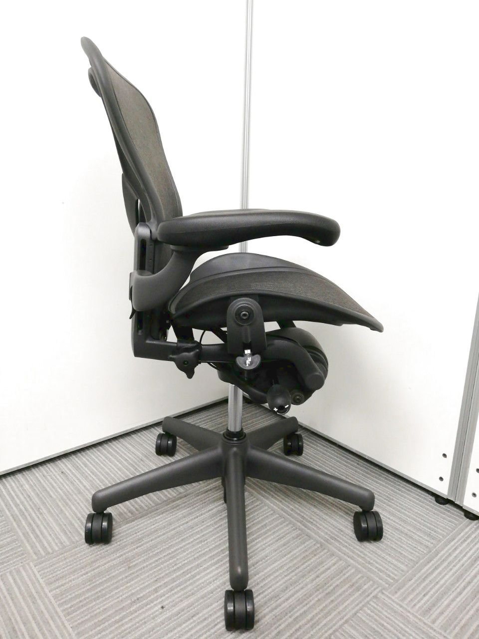 アーロンチェアは座る人ひとりひとりの体型や使うシーンに合わせて細かく調整できる機能が充実しており、弊社スタッフでも大好きなチェア。
