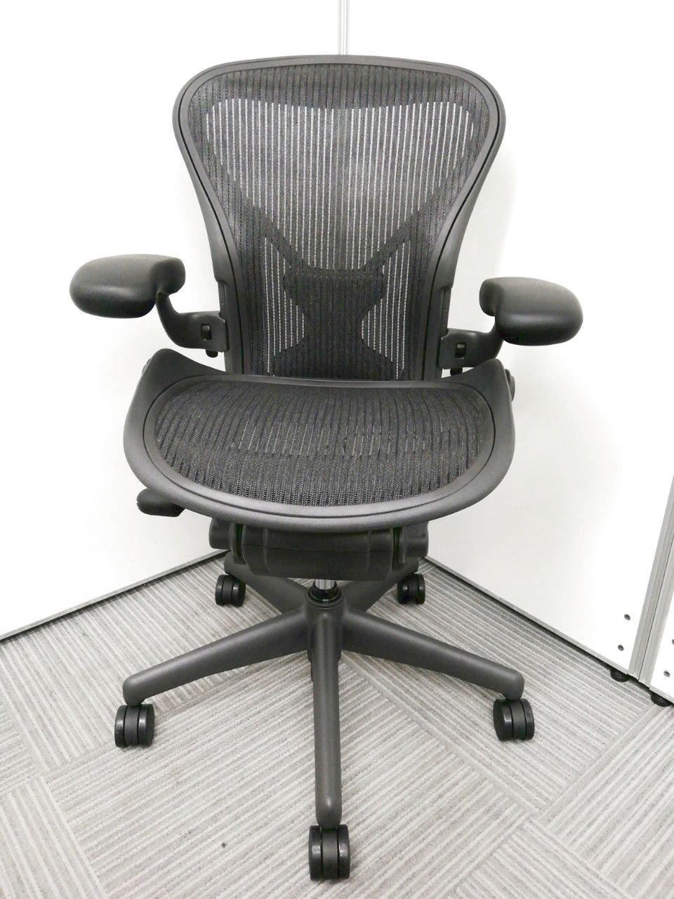 【★状態イマイチのためお安く!】■ハーマンミラー製 アーロンチェア Bサイズ 固定肘 ※キズあり・ランバーサポート無・昇降ガス圧弱めのためお安く!【訳あり特価品】