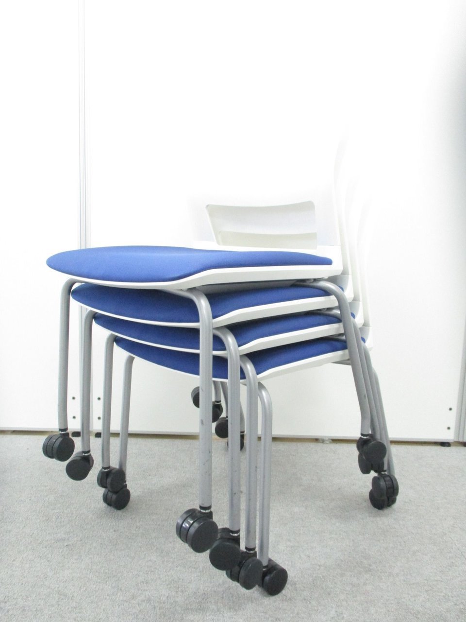 【重ねて収納可能!スペースの削減にお勧めなスタッキングチェア!】■コクヨ(KOKUYO)製 CK-160 スタッキングチェア ミーテイングチェア ■背カバーあり ■ブルー×ホワイトシェル