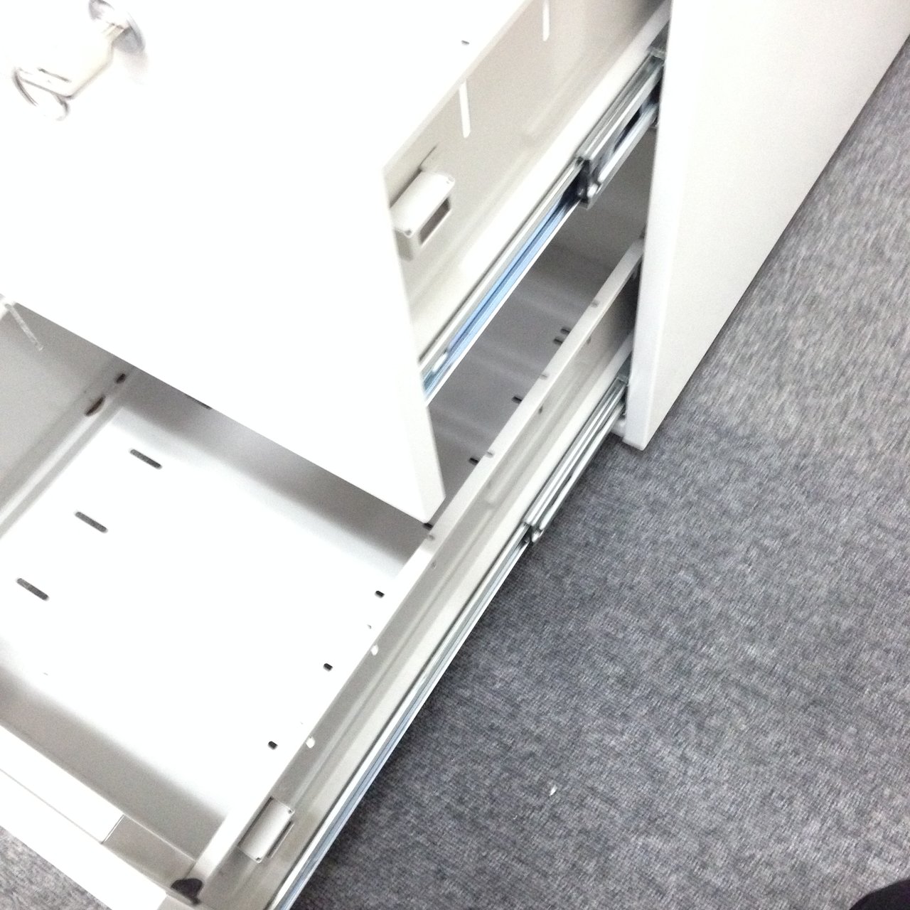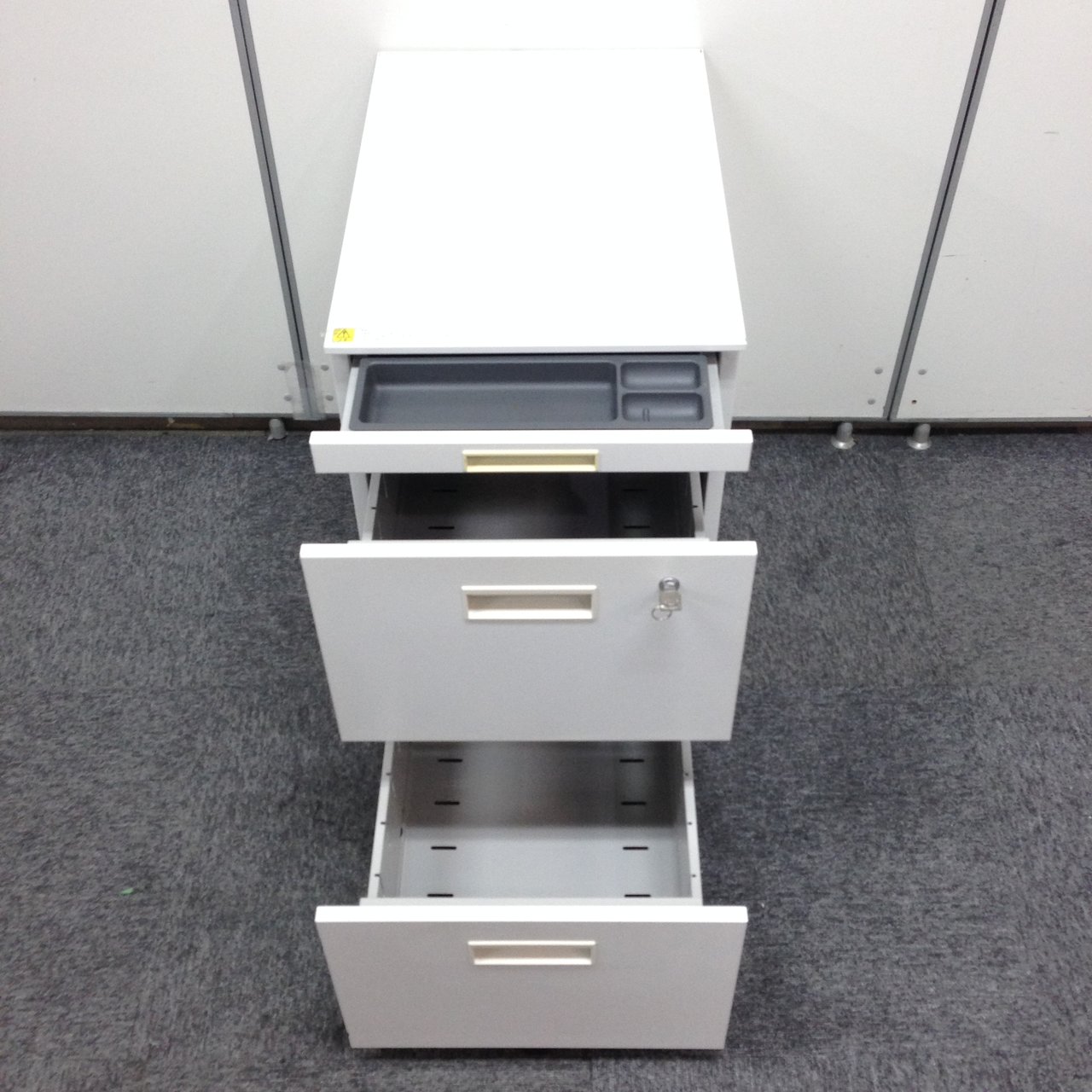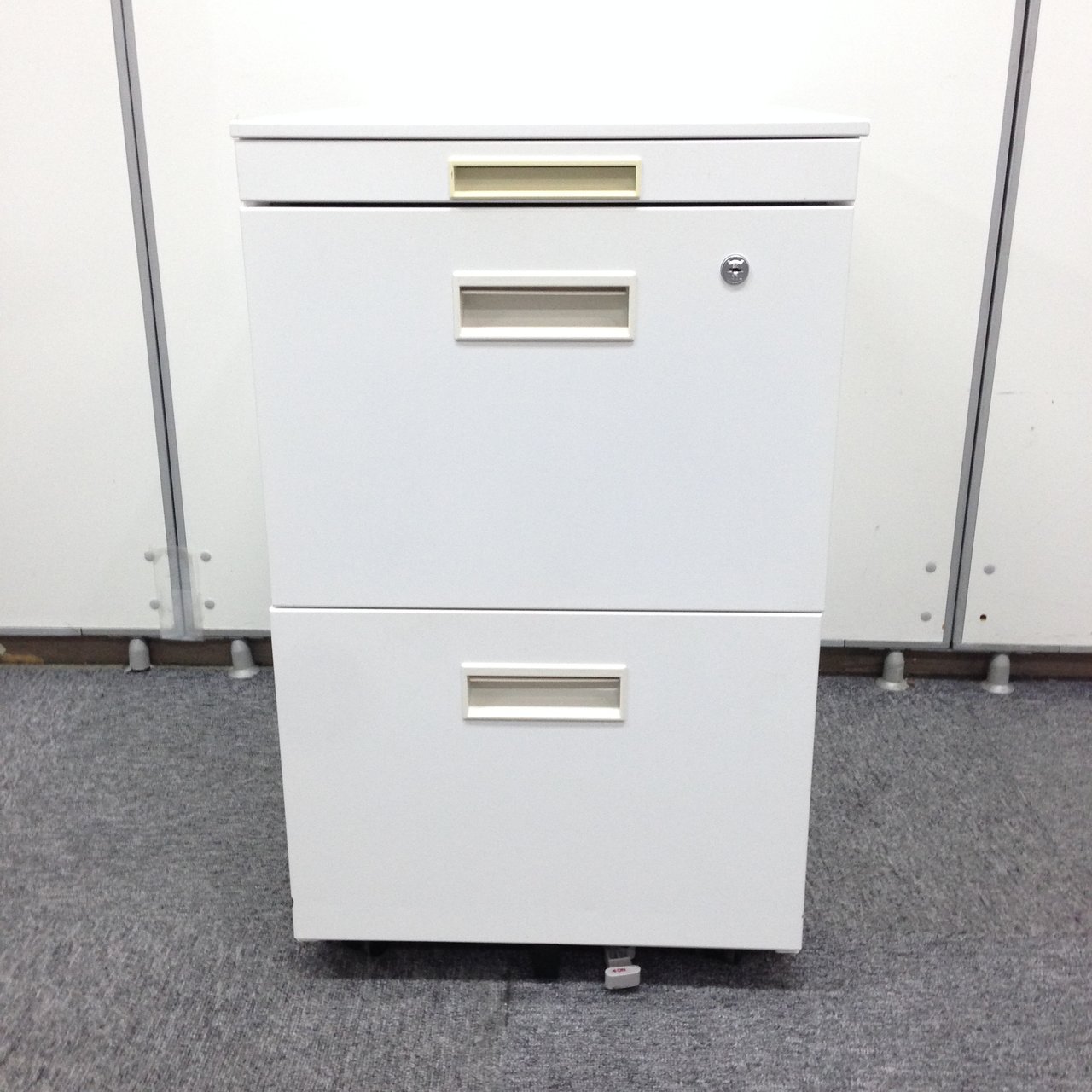 - 一部不具合ありその脇机・ワゴンの本来の効用を果たすための機能以外の一部が使用不可な状態。(例、引出が開閉しづらい、 キャスターロック機能使用不可、ラッチ不良 等がある。)