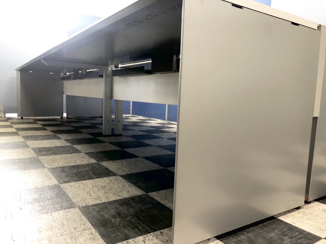 【隣の人とぶつかりにくいこぶりなチェア!】 見た目重視なオフィス作りに! 人気のワークステーションデスク+高級チェア×8脚+収納ワゴン×8台- 埼玉本店