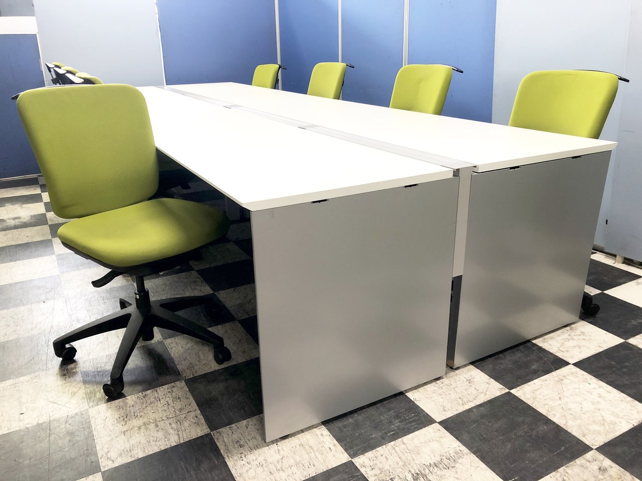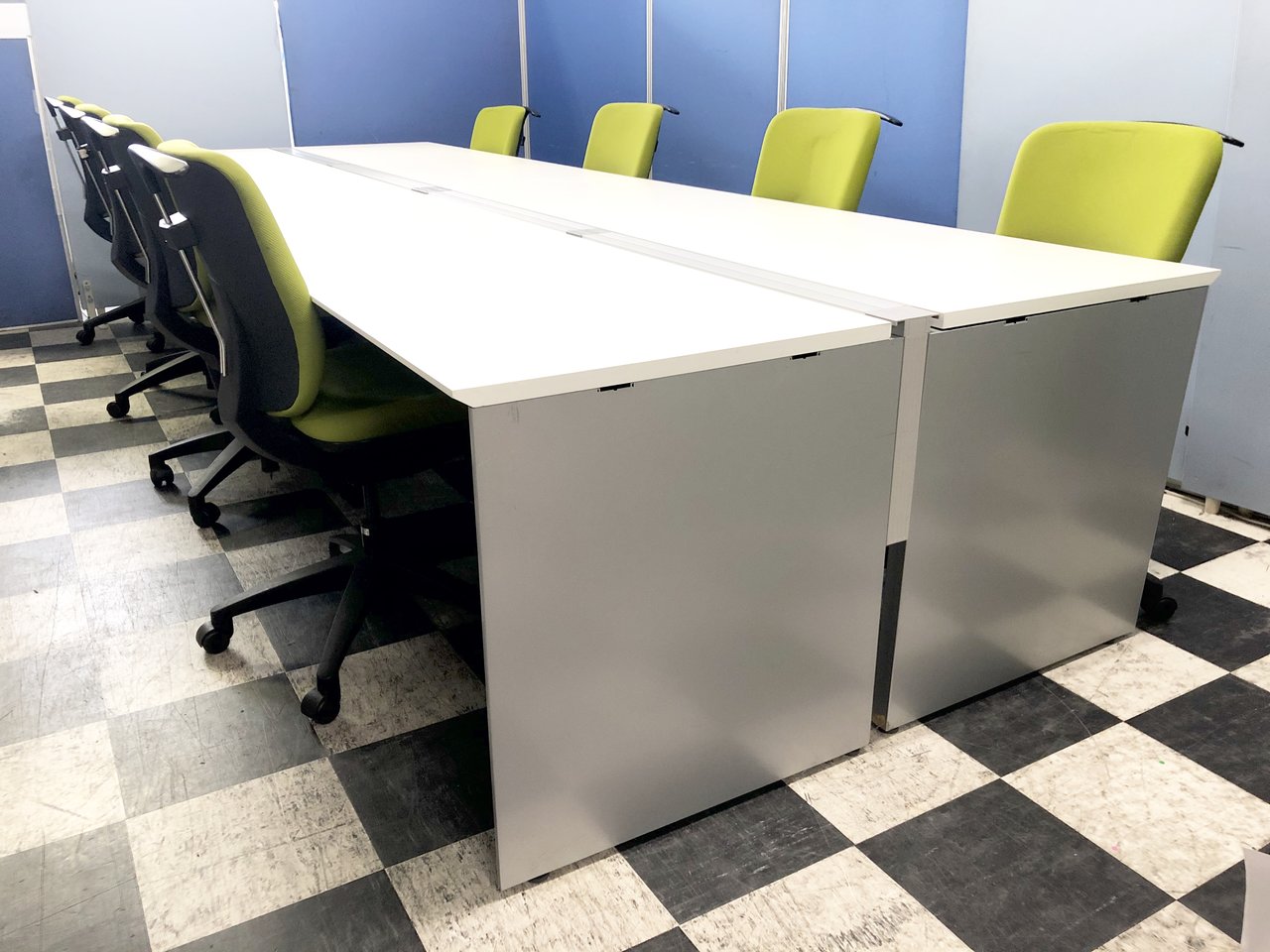 【8名様用!ミーティング用にも!】 お部屋を明るくするホワイト天板! ワークステーションデスク+チェア×8脚- 埼玉本店