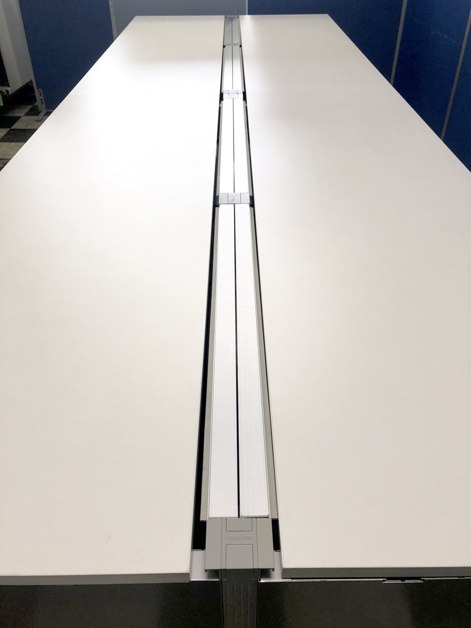 【幅や奥行を自由自在にできるフリーアドレスデスク】 コクヨ/ワークヴィスタ/天板:ホワイト/脚:シルバー リサイクルショップ 中古家具 *福岡市で中古オフィス家具をお探しなら、オフィスバスターズ福岡南店へ! 福岡市南区を拠点に、デスク・チェア・書庫・複合機など中古オフィス家具を一式ご提供。福岡市内のオフィス移転や起業、レイアウト変更もワンストップでサポートします。*