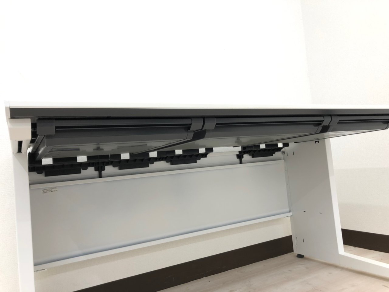 - 地震時、センター引出しが飛び出さないよう、ラッチ機構を装備。脚はデスクの横ズレを軽減させる設計になっています。