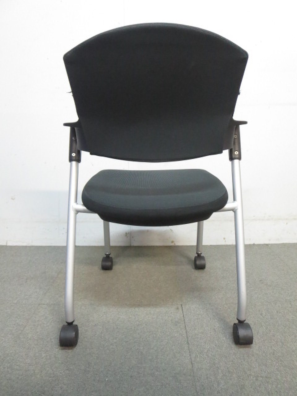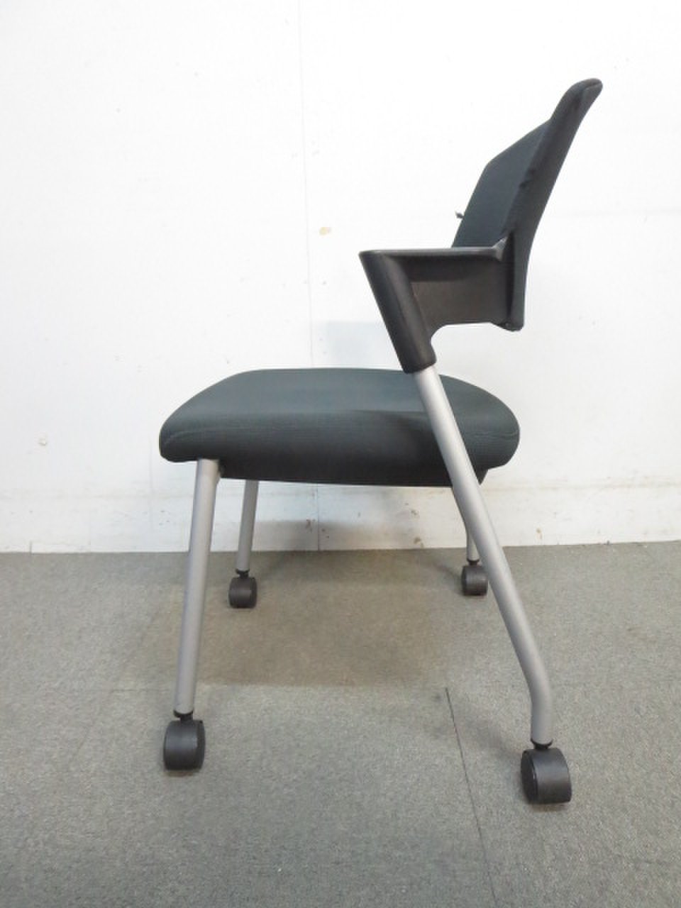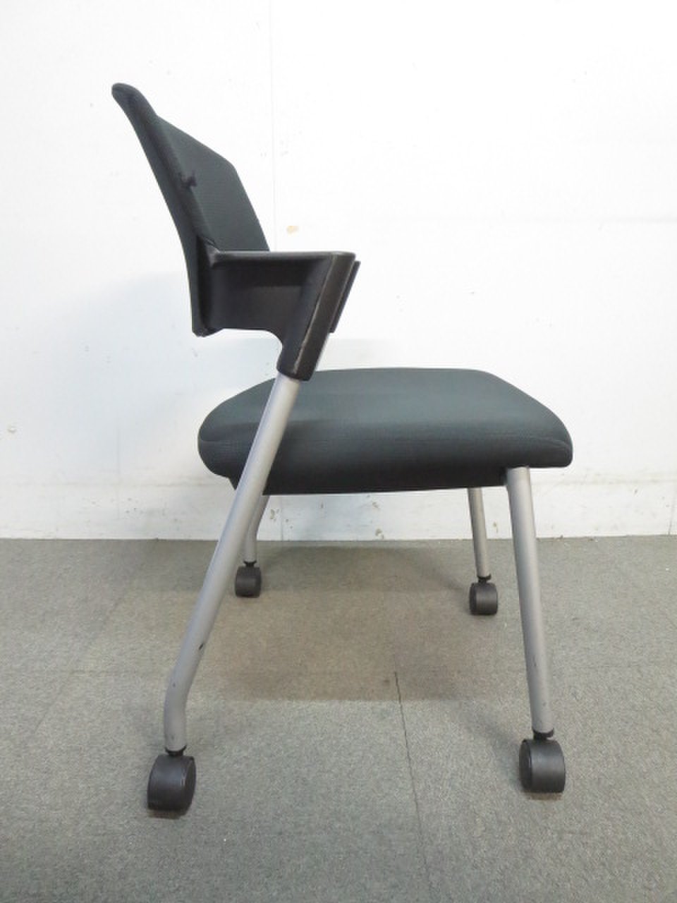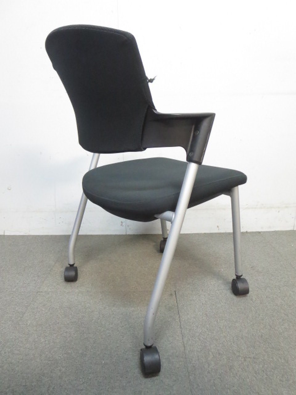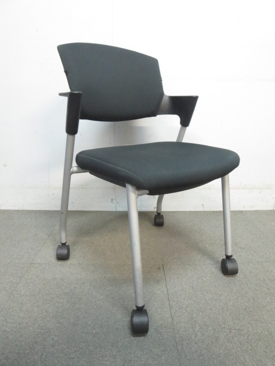 【シンプルスマートなスタッキングチェア!分厚いクッションで長時間でも快適な座り心地!】■スタッキングチェア 肘付ミーティングチェア ■固定肘 ■キャスター付 ■ブラック ■背面樹脂/コクヨ(KOKUYO/プロッティ