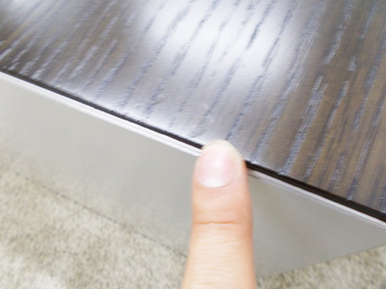 - あり黄ばみ・変色が広い範囲にうっすらある、または濃い黄ばみ・変色が一部ある。(例、天板、幕板、棚板、サイド部分、脚部等にある。)