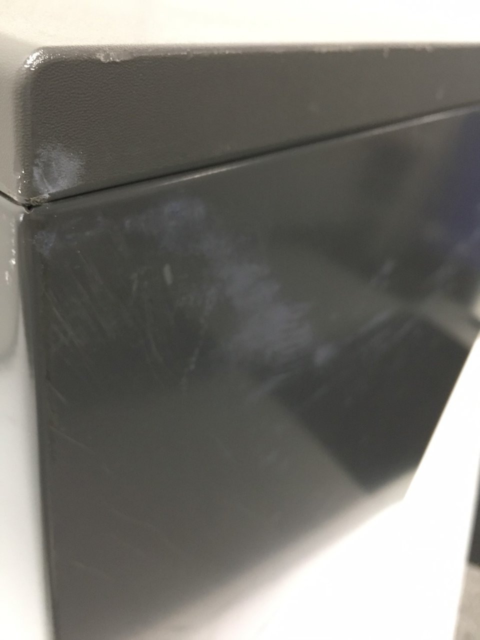 - 目立つ箇所あり傷・凹みが多数、深い傷・凹みが一部ある。(例、天板、正面、背後、サイド部分にある。)