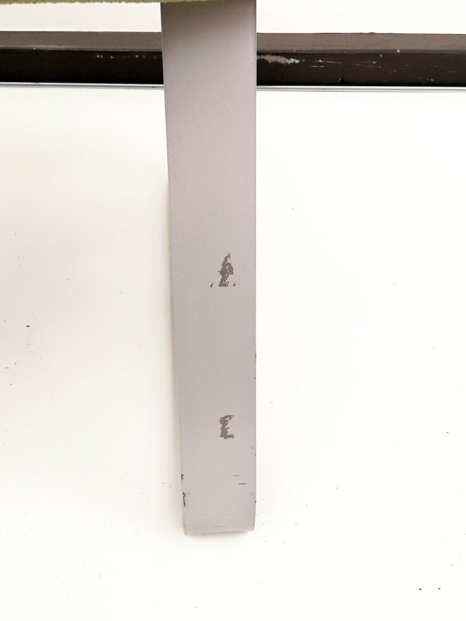 - かなり強い濃い黄ばみ・変色が商品全体にある。(例、座面・背もたれ、脚部等にある。)