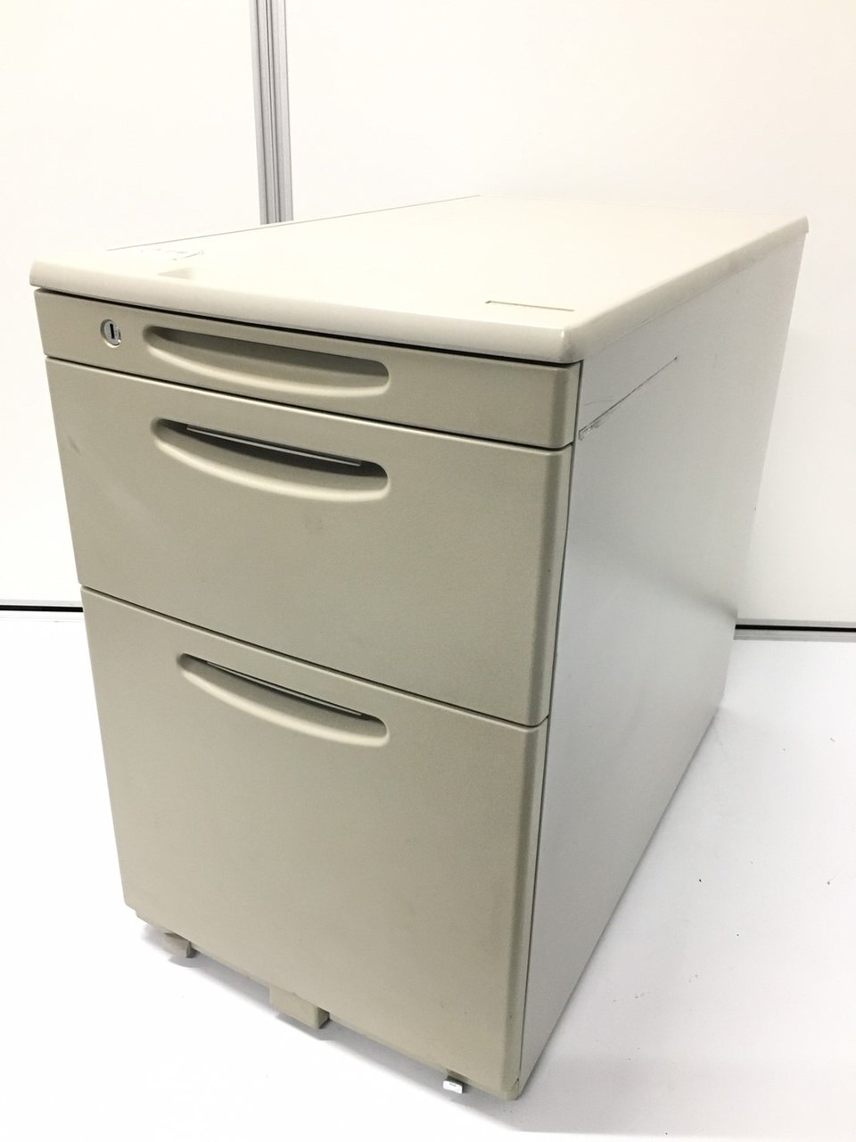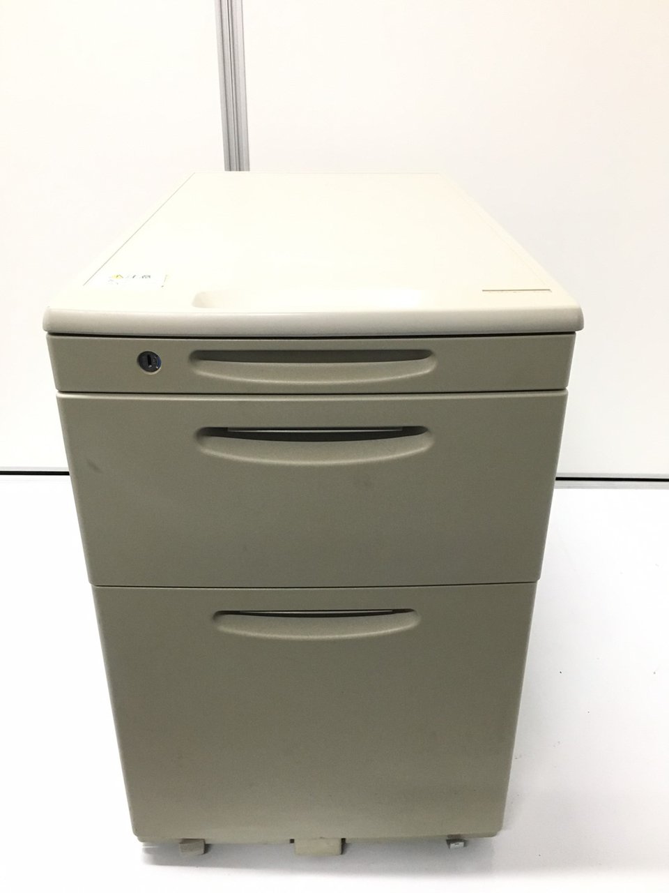 ★【商品入替のため、残り1台限り】オカムラ製 SD ライトグレー H610サイズ シリンダー錠 天板の把手とキャスターで移動がらくらく! シンプルでスタンダードな3段ワゴン! デスクインワゴン 3段ワゴン