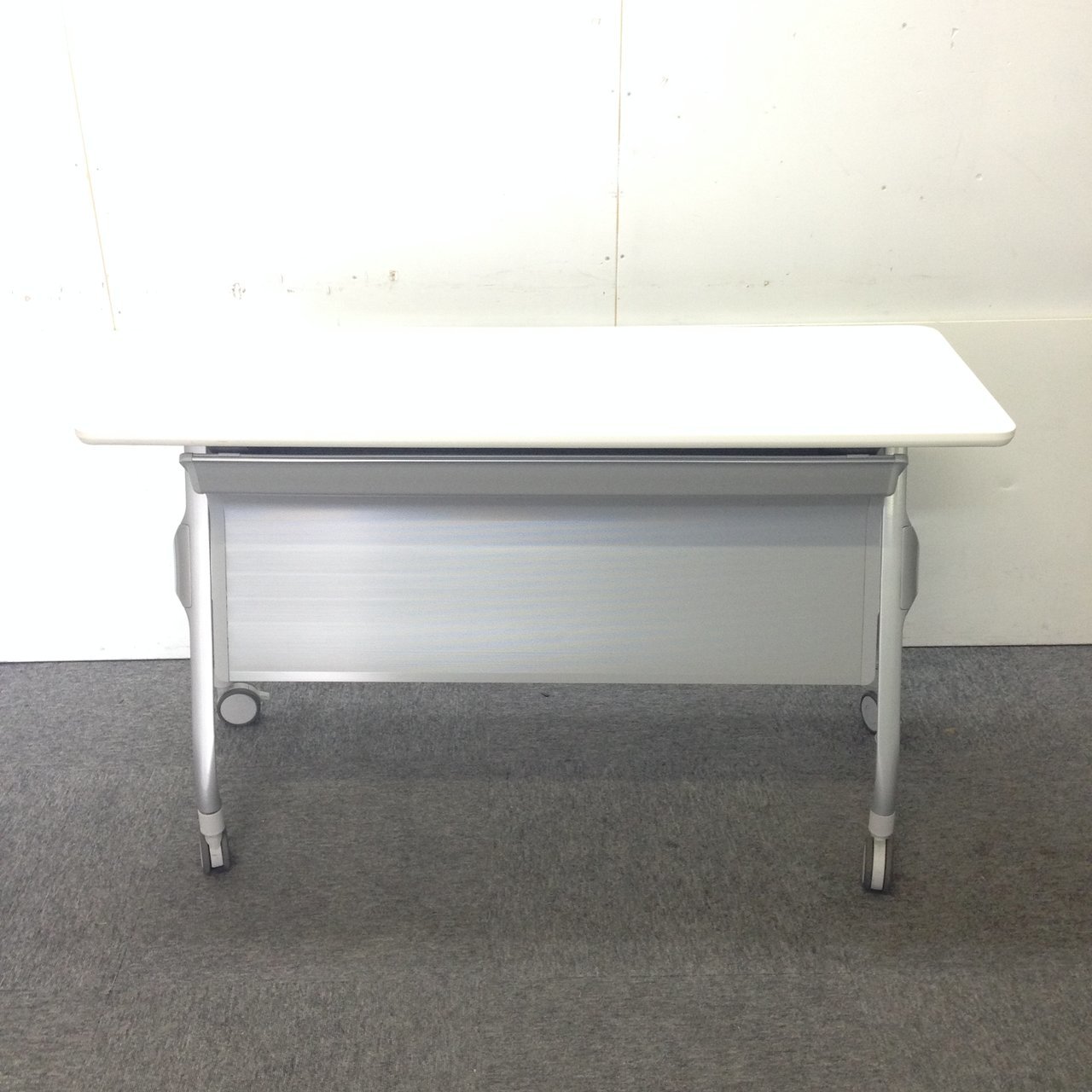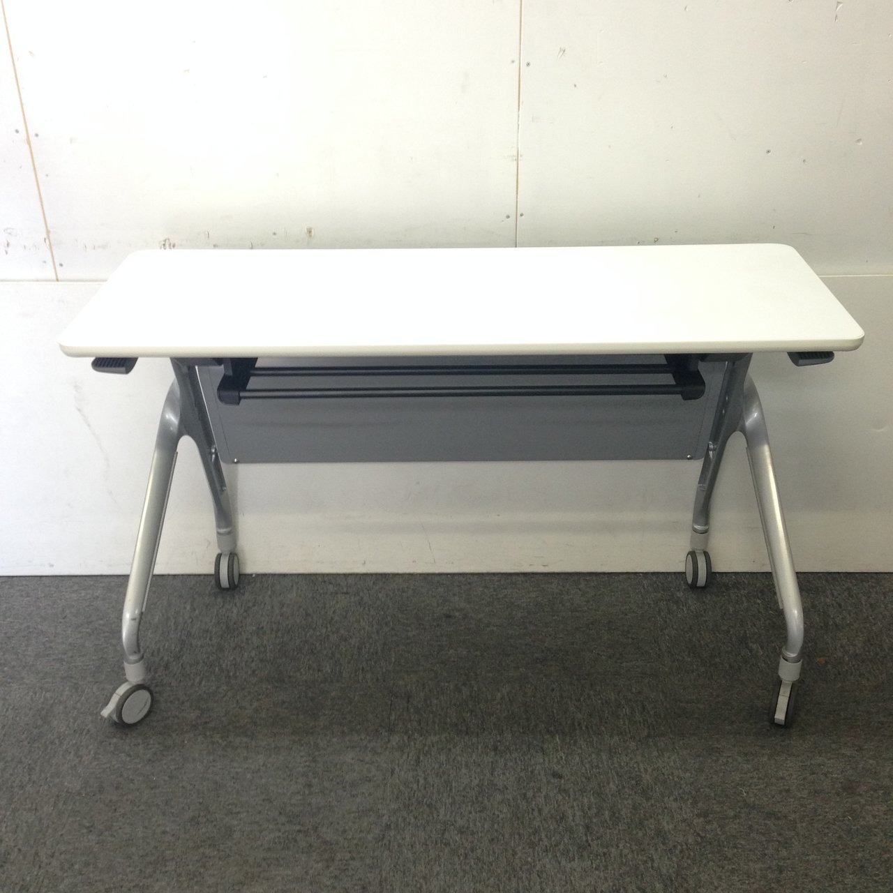 【折りたたみ収納が秀逸!スタイリッシュなデザインで高品質!】■コクヨ(KOKUYO)製 リーフラインシリーズ サイドスタックテーブル フラップタイプ W1200×D450㎜ ■キャスター・幕板付 ■ホワイト