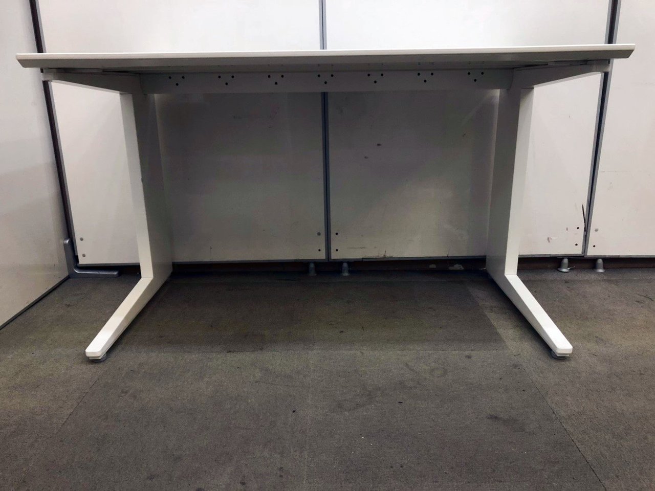 【上質なオフィスデスクがお買い得!】■オカムラ プロユニットシリーズ 平デスク W1200mm ホワイト パネル脚タイプ ※日焼け・塗装剝がれがあるためお安く!