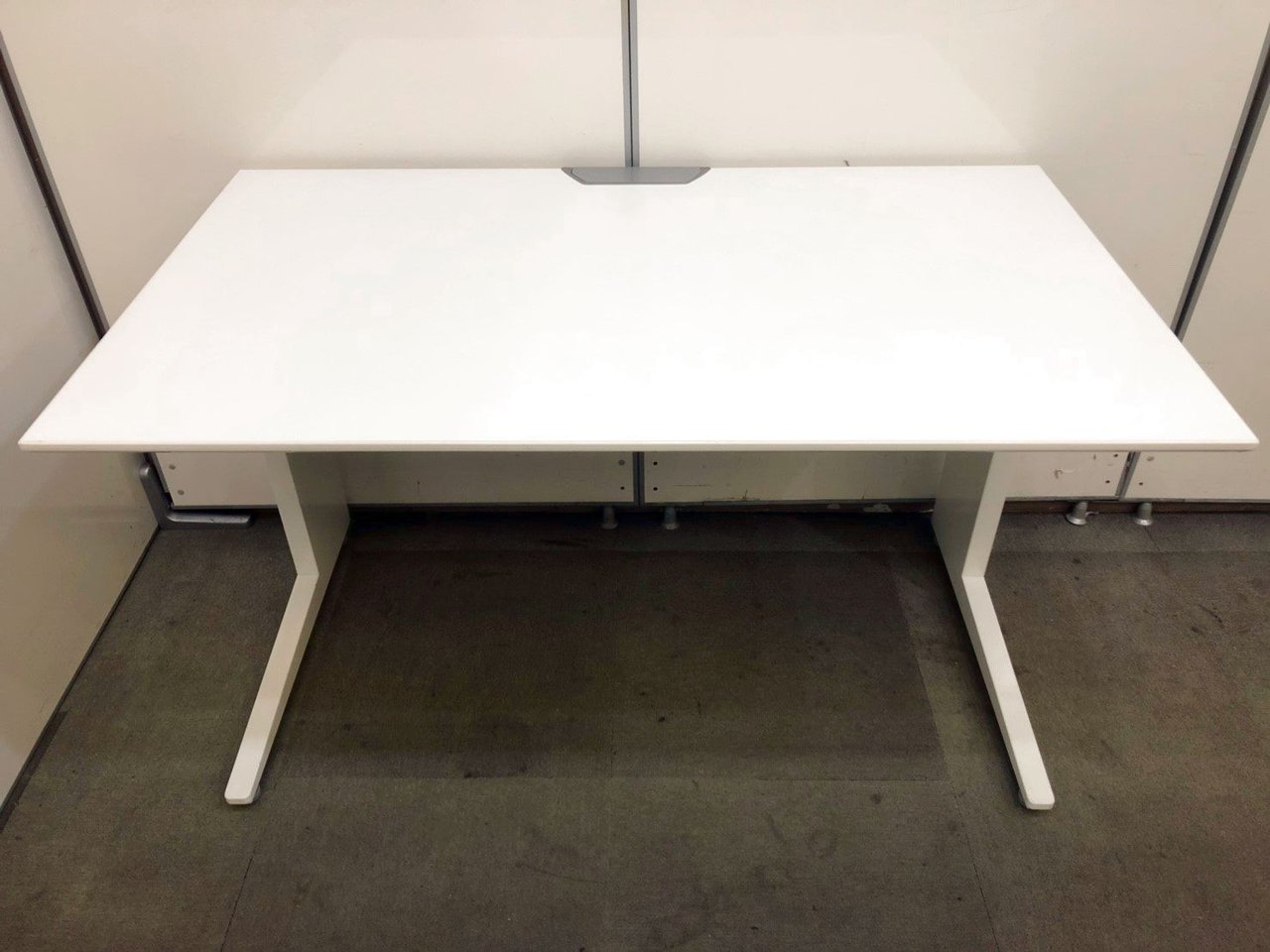 【パネル脚が珍しい!安心の国内メーカーのシンプルなオフィスデスク!】 ■オカムラ(okamura)製 プロユニットシリーズ 平机 引き出し無 W1200×D700㎜ ■パネル脚 ■配線口 ■ホワイト ※日焼け・塗装剝がれ有【弊社使用欄:A01043238】