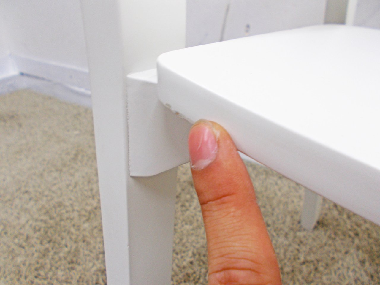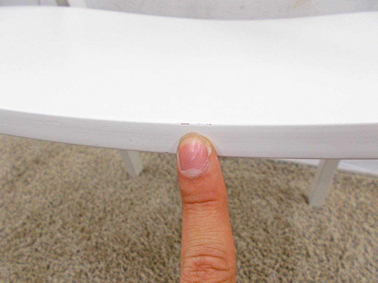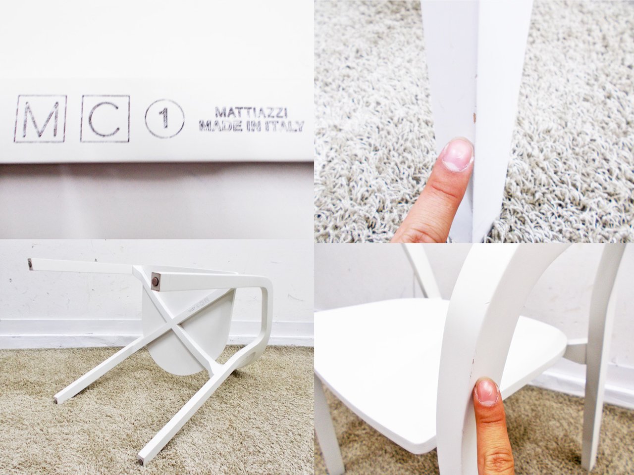 - かなり強い濃い黄ばみ・変色が商品全体にある。(例、座面・背もたれ、脚部等にある。)