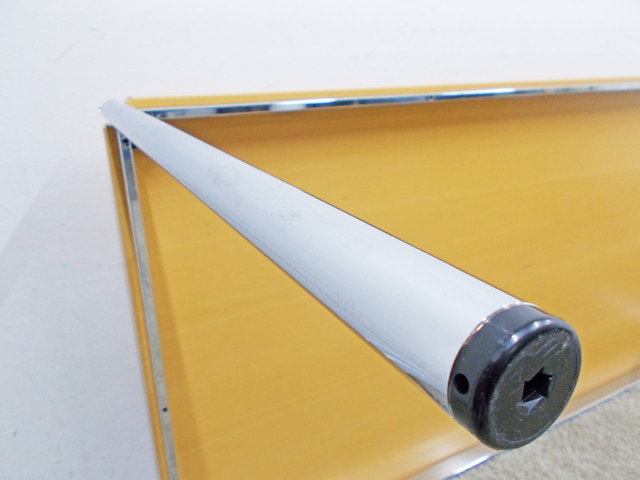 - 一部不具合あり天板歪み、アジャスター無し、キャスター使用不可ようなそのテーブルの本来の効用を果たすための機能以外の一部が使用不可な状態。(例、キャスターロッ ク機能使用不可、棚板無し等がある。)